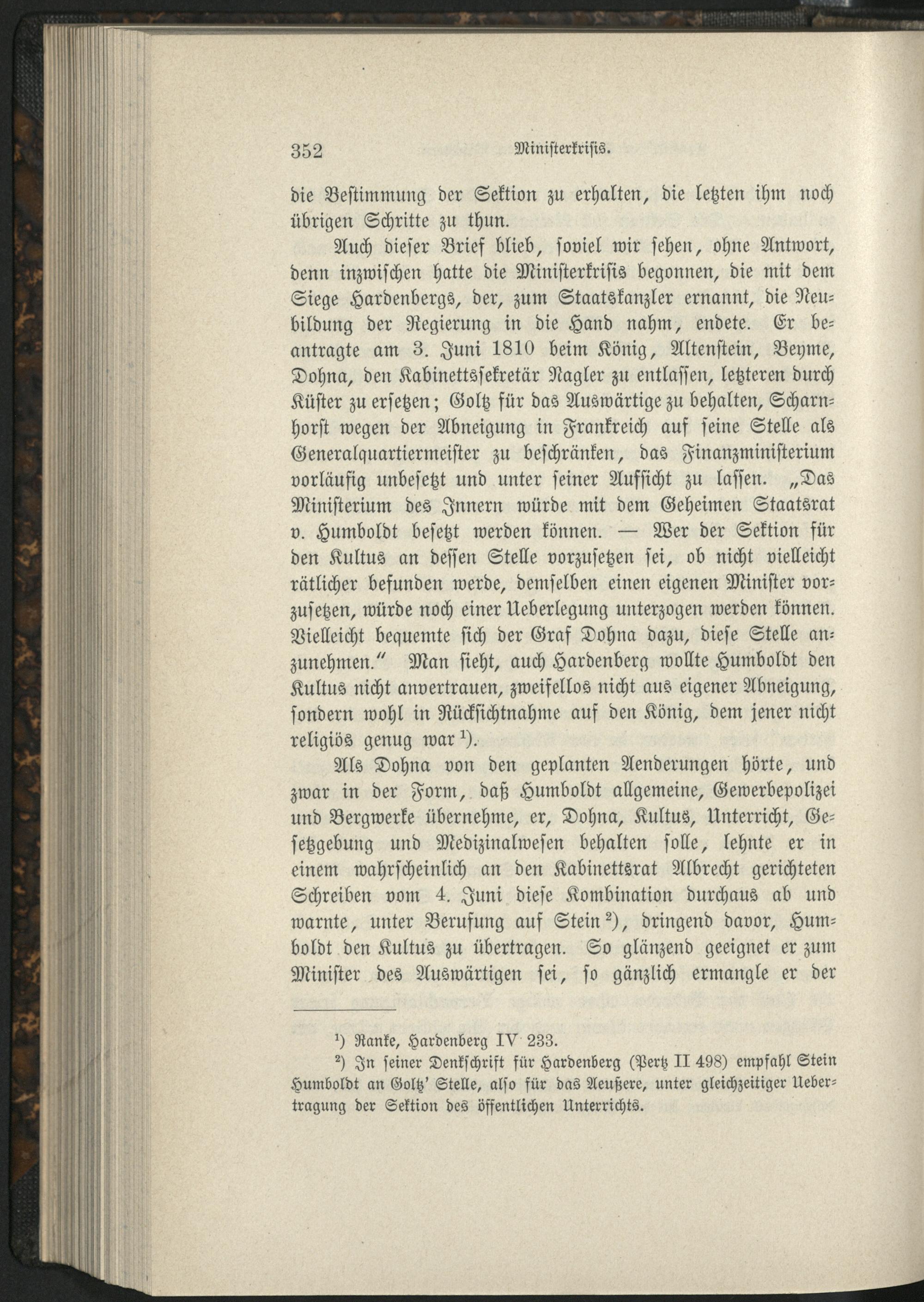 Zweites Buch. An der Spitze des Unterrichtswesens 1809 und 1810. Erstes Kapitel. Uebernahme und Vorgeschichte des Amtes.