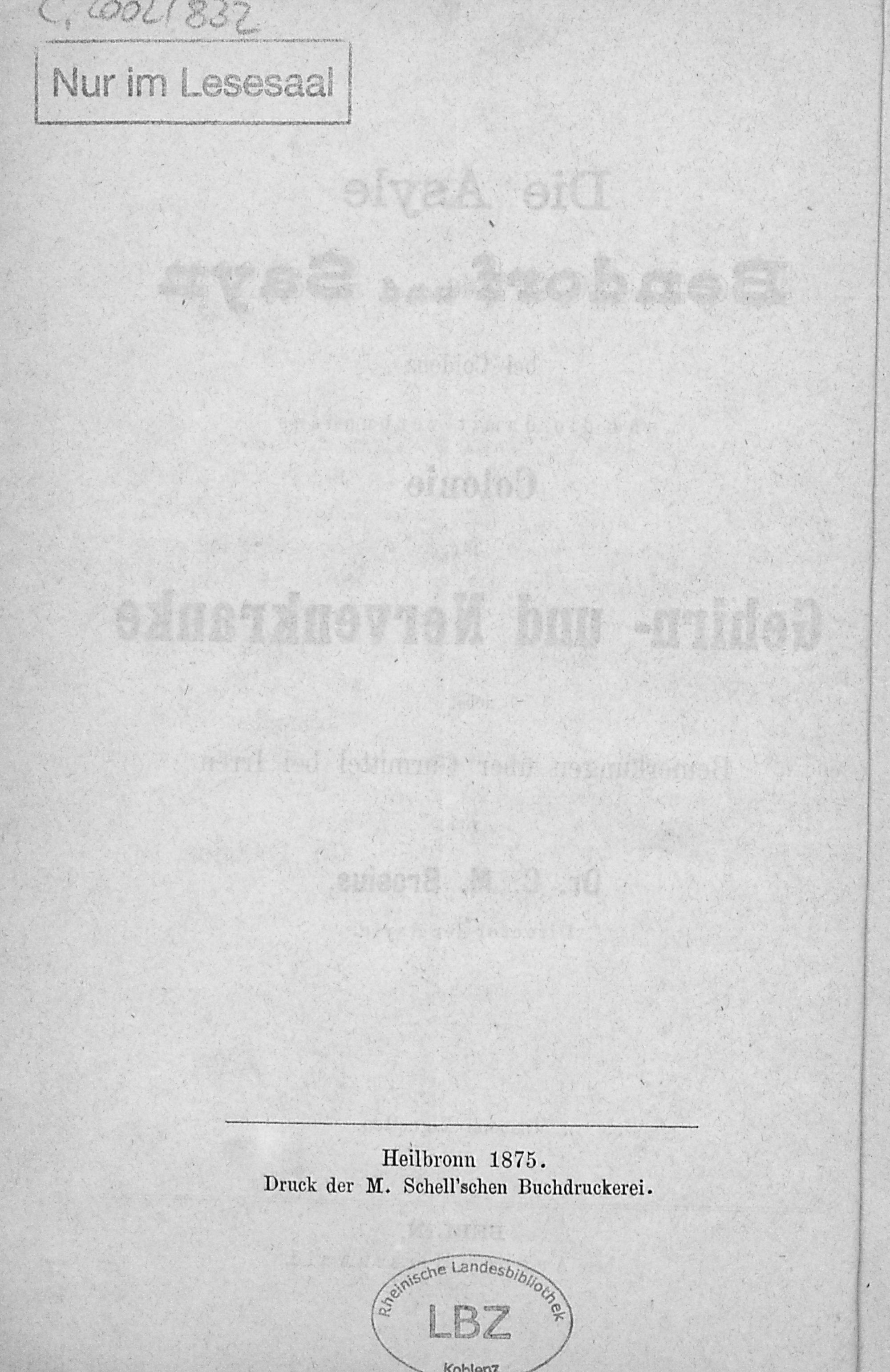 Die Asyle Bendorf und Sayn bei Coblenz und die damit verbundene Colonie für Gehirn-...