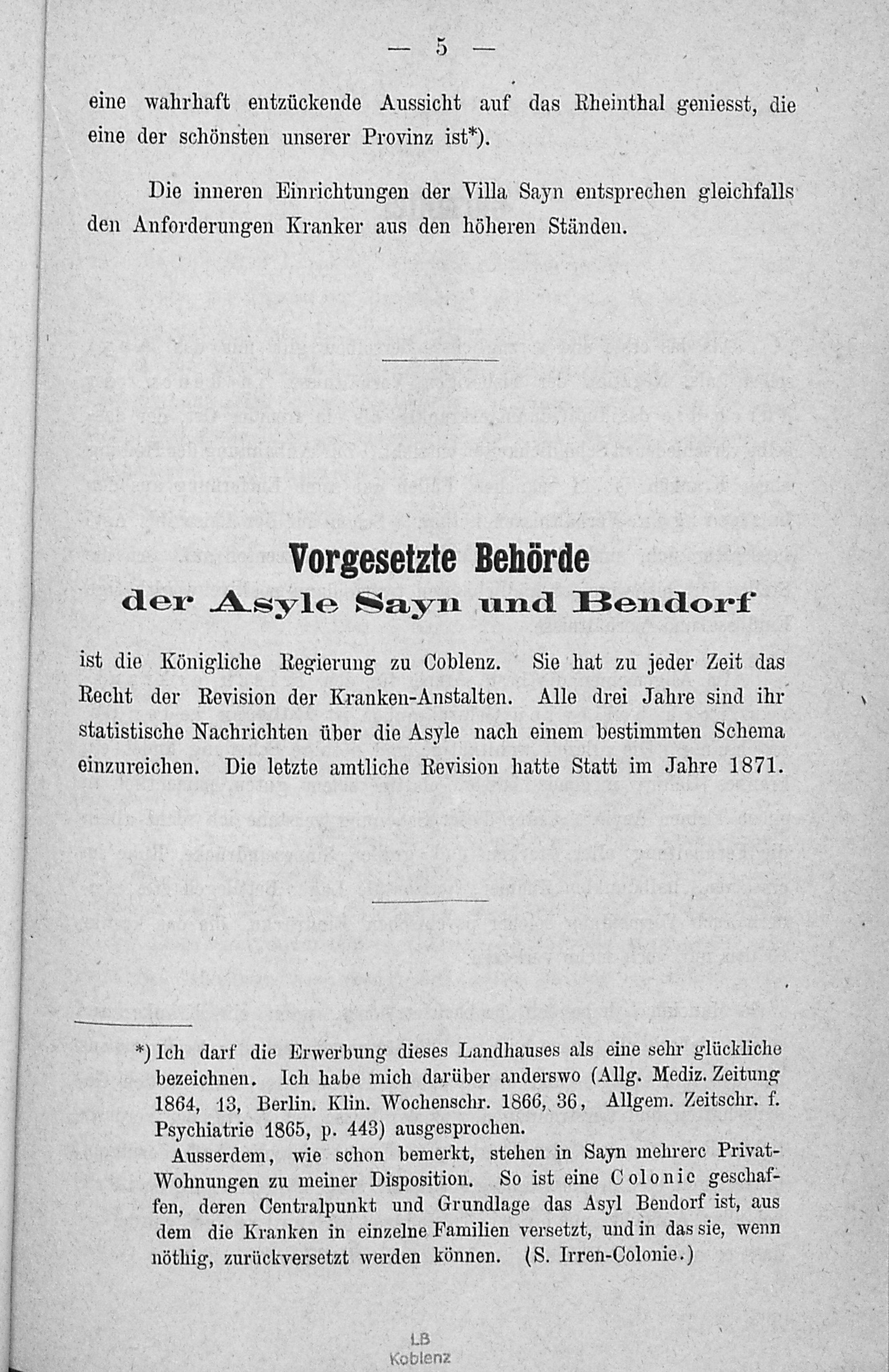 Die Asyle Bendorf und Sayn bei Coblenz und die damit verbundene Colonie für Gehirn-...