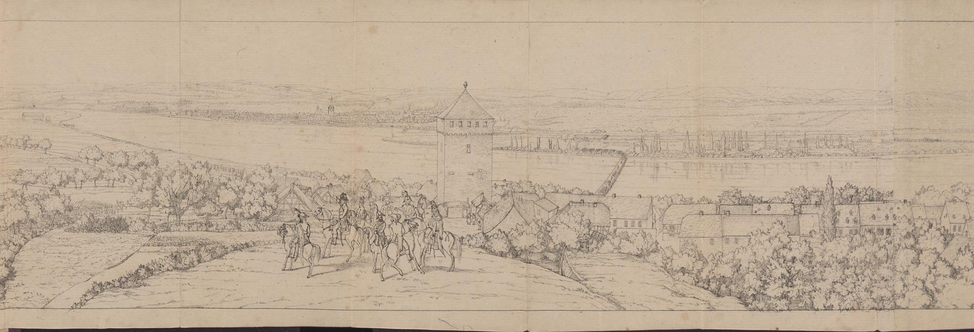Das von den Gebrüdern Simon und Niklas Meister gemalte Rundgemälde des schönsten Punktes des Mittelrheins, von Ehrenbreitstein bis Hammerstein : belebt durch den vierten Rheinübergang der Franzosen unter General Hoche 1797, topographisch-historisch erklärt ; mit einer übersichtlichen historischen Einleitung und Umrissen zu einer Biographie des General Hoche