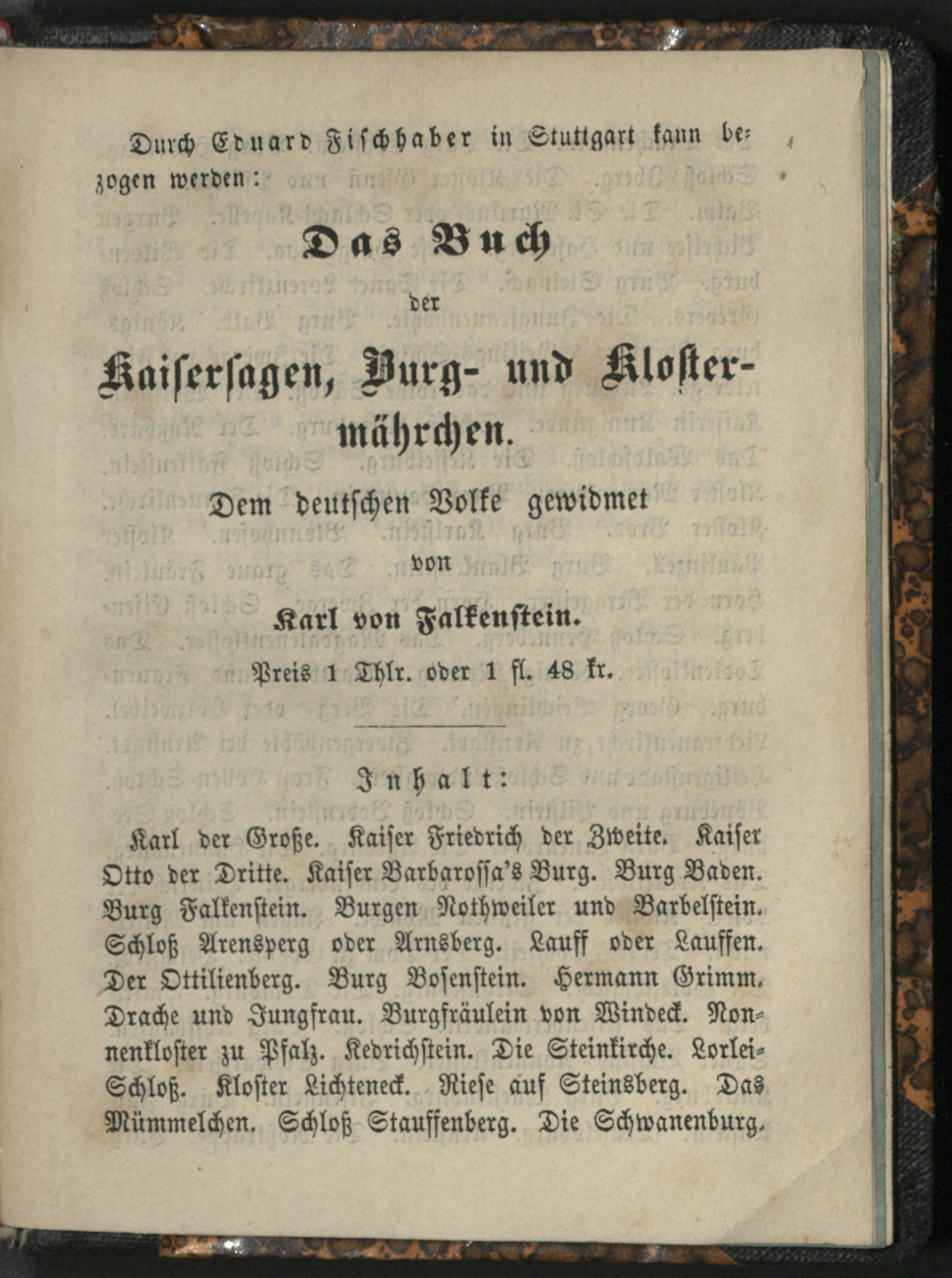 1. Die Burgen, Klöster, Kirchen und Kapellen Württembergs und der preußisch-hohenzollern'schen Landestheile mit ihren Geschichten, Sagen und Mährchen