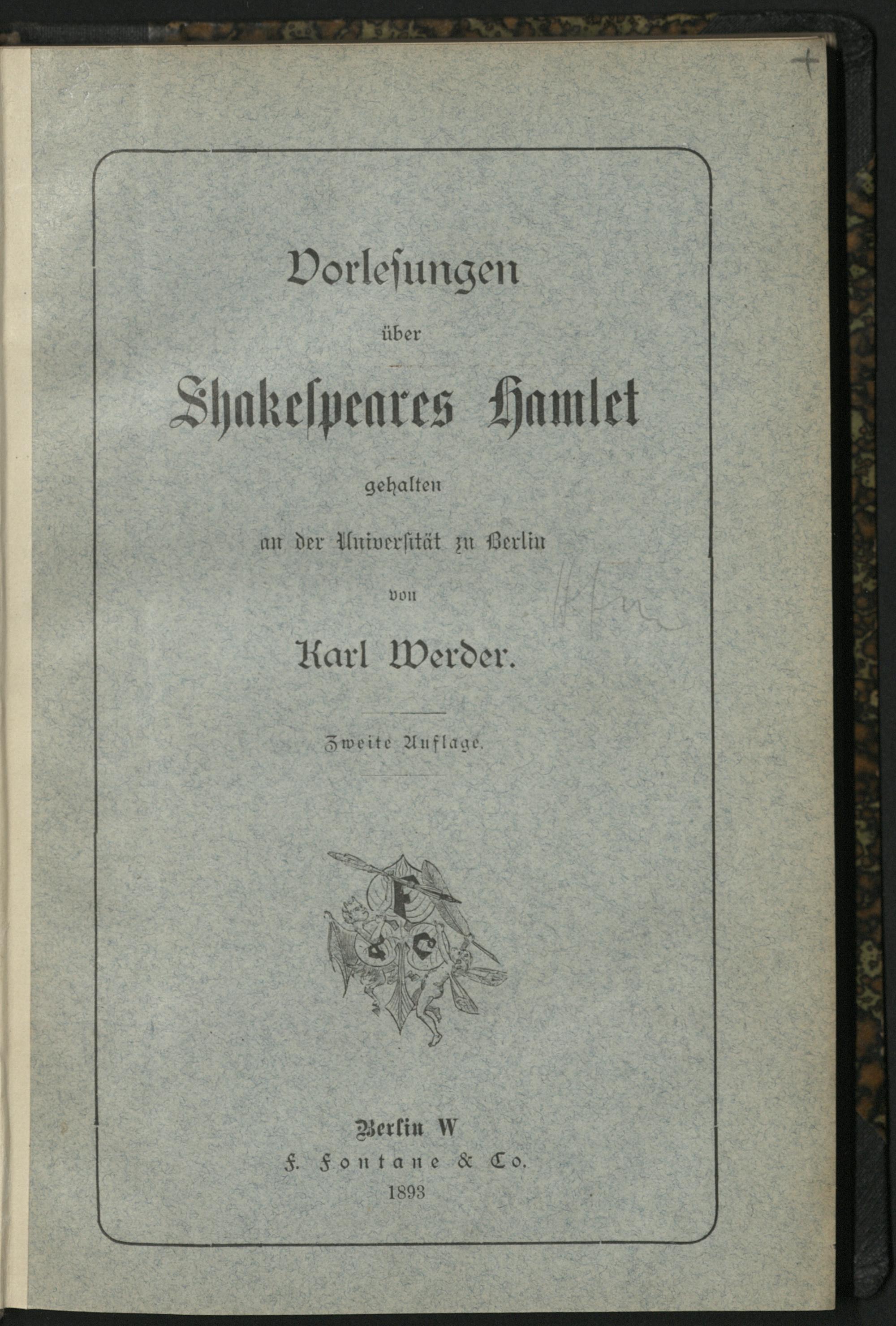 Vorlesungen über Shakespeares Hamlet : gehalten an der Universität zu Berlin (zuerst im Wintersemester 1859 - 1860, zuletzt 1871 - 1872) / von Karl Werder