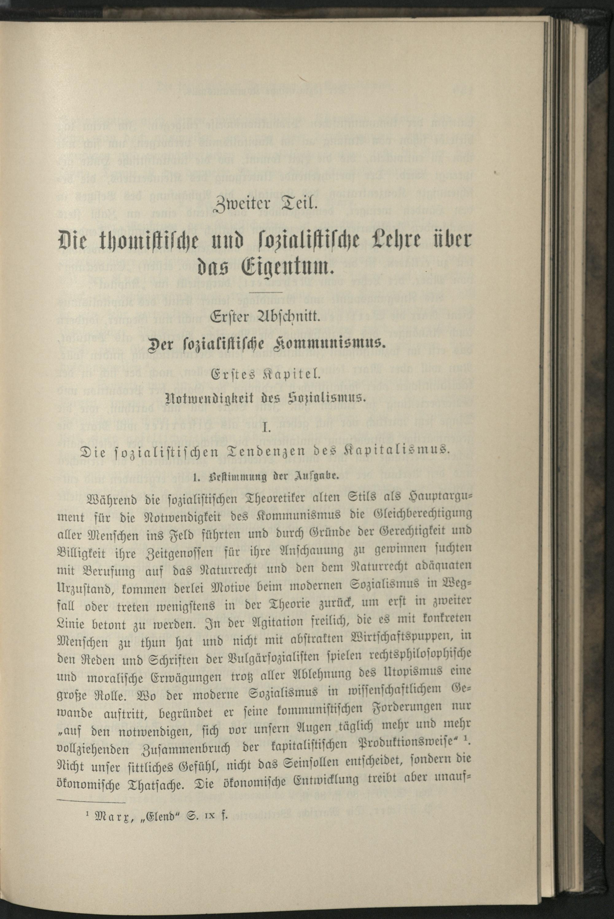 Zweiter Teil. Die thomistische und sozialistische Lehre über das Eigentum. Erster...