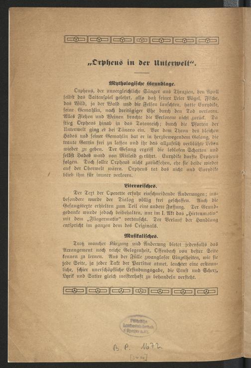 Orpheus in der Unterwelt : Textbuch ; Burleske Operette in 3 Akten / Frei nach J. Offenbach