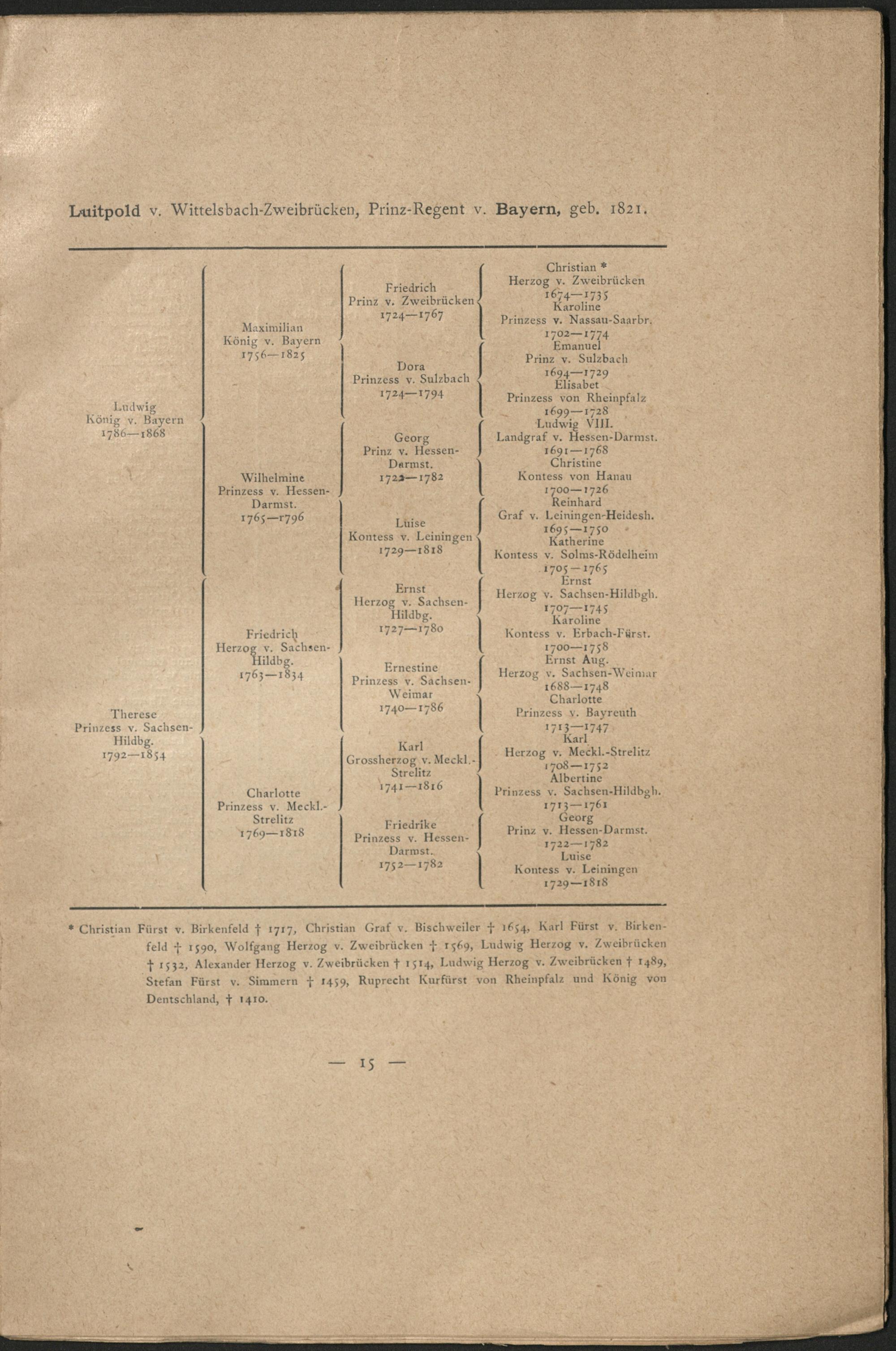 Ahnentafeln der wichtigeren Regenten, präsumptiven Thronerben und Kronprätendenten...