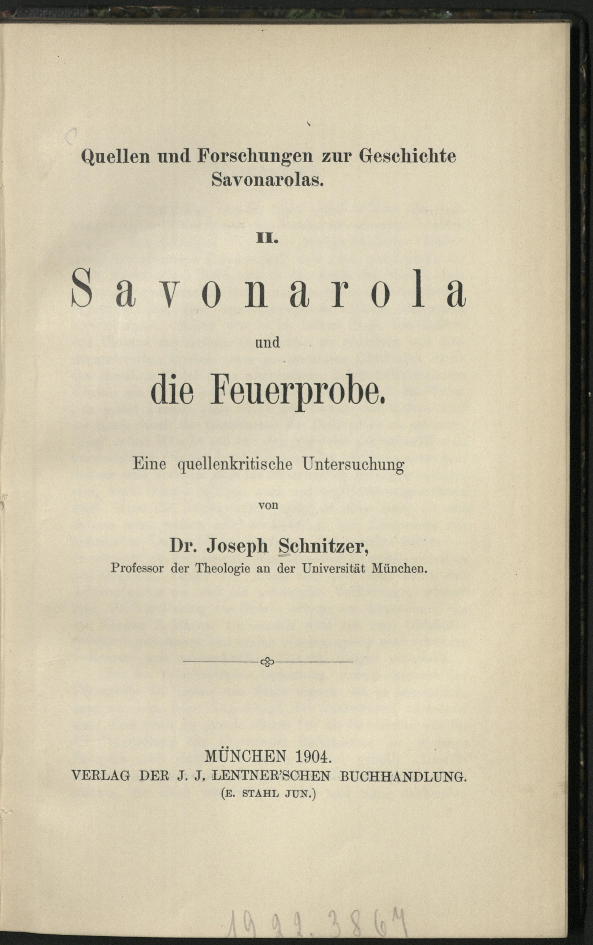 Savonarola und die Feuerprobe / von Joseph Schnitzer