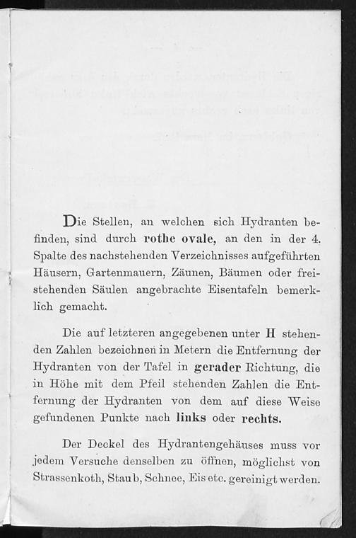 Verzeichniss der zur städtischen Wasserleitung in Coblenz gehörigen Hydranten
