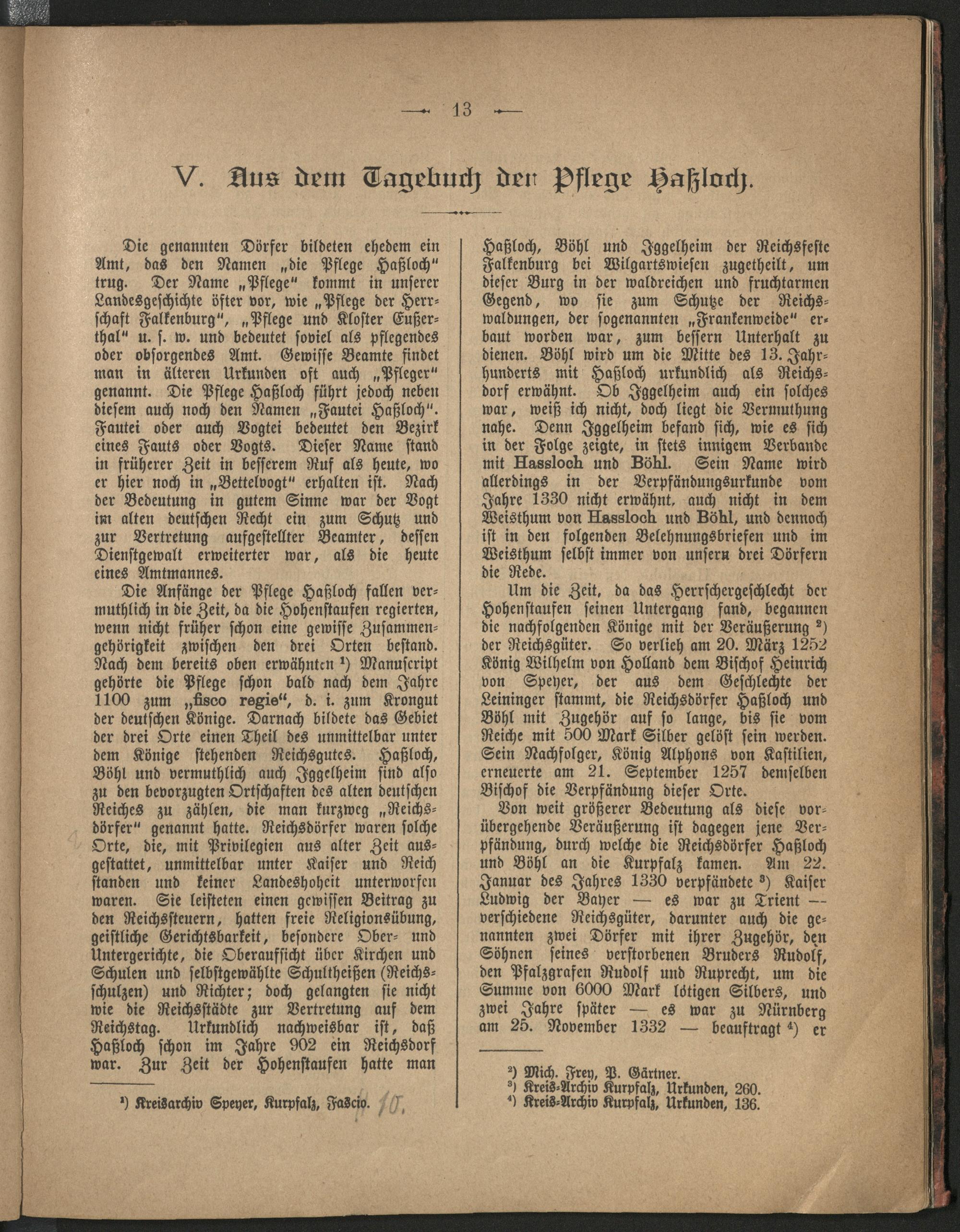 1 (1896) Beiträge zur Geschichte der Pflege Hassloch / von G. Wenz