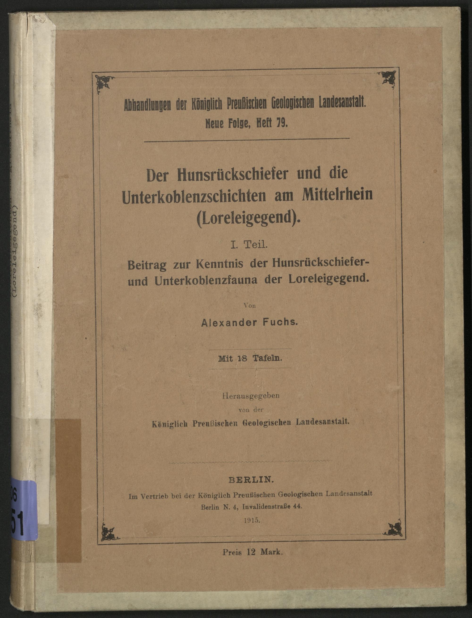 Der Hunsrückschiefer und die Unterkoblenzschichten am Mittelrhein (Loreleigegend) / von Alexander Fuchs