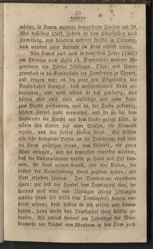 Übersicht wahrhafter und merkwürdiger Thatsachen des Bauern-Aufruhrs in Deutschland im Jahre 1525 : Nach einem Manuscripte von Peter Harrer, gewesenen Geheimschreiber des weil. Herrn Pfalzgrafen Ludwig V. zu Heidelberg. Mit den Bildnissen des Churfürsten Ludwig V. und des Ritters Göz von Berlichingen geziert / Verfaßt u. hrsg. durch Joh. Michael König, Lehrer
