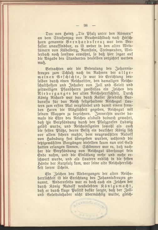 B. Geschichte des Johanniskreuzsteines.