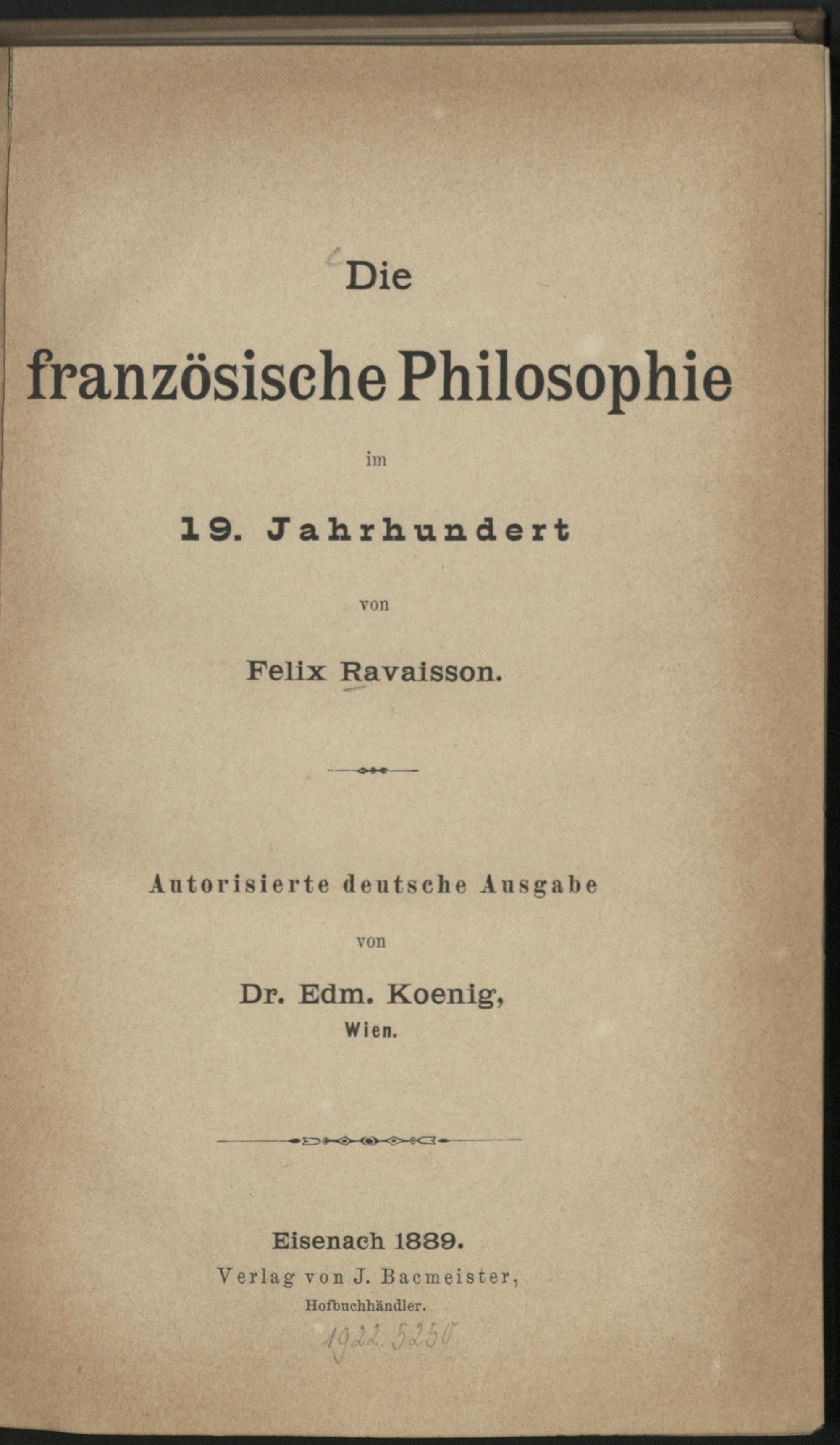 Die französische Philosophie im 19. Jahrhundert / von Felix Ravaisson