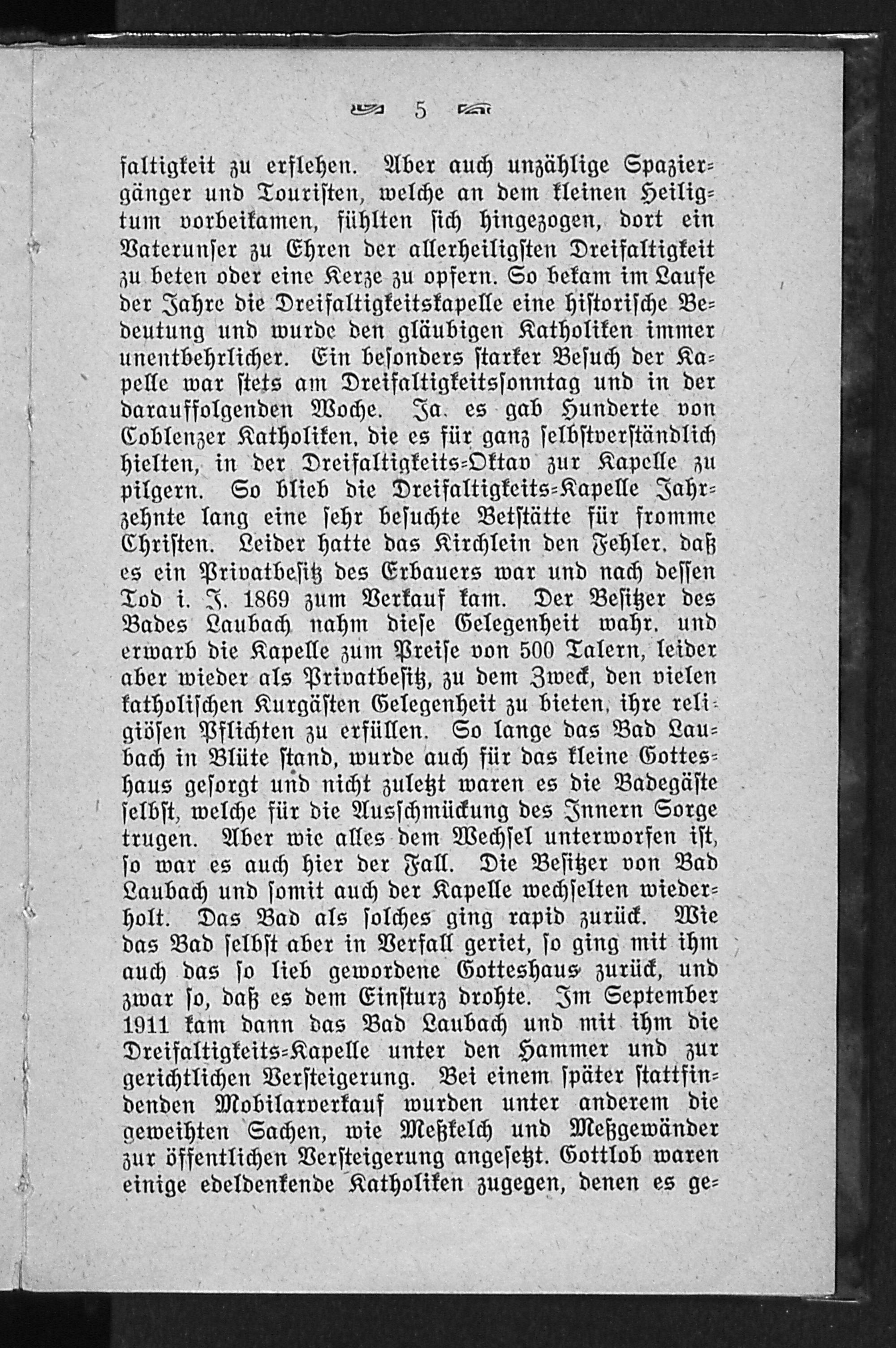 Die Dreifaltigkeits-Kapelle auf der Laubach zu Coblenz : zur Erinnerung an die Wiedereinrichtung am Dreifaltigkeits-Sonntag, den 18. Mai 1913 / hrsg. vom Vorstande des Bauvereins der Dreifaltigkeits-Kapelle, e.V., Coblenz