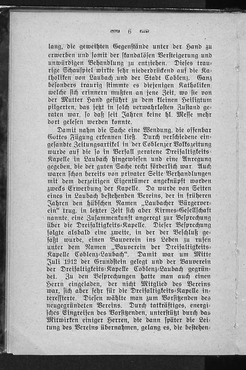 Die Dreifaltigkeits-Kapelle auf der Laubach zu Coblenz : zur Erinnerung an die Wiedereinrichtung am Dreifaltigkeits-Sonntag, den 18. Mai 1913 / hrsg. vom Vorstande des Bauvereins der Dreifaltigkeits-Kapelle, e.V., Coblenz