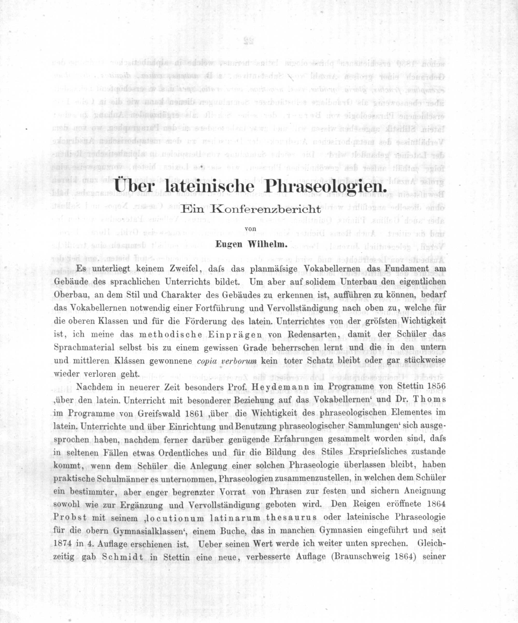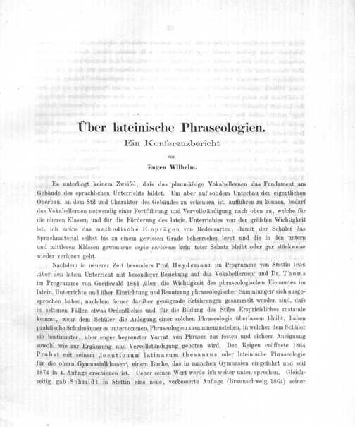 Über lateinische Phraseologien. Ein Konferenzbericht. von Eugen Wilhelm.