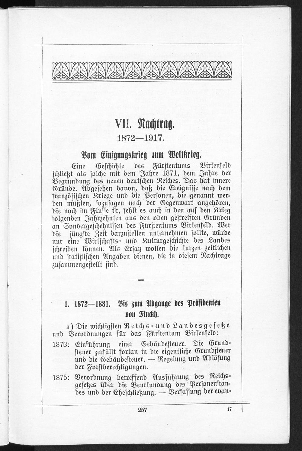 VII. Nachtrag. 1872-1917. Vom Einigungskrieg zum Weltkrieg.
