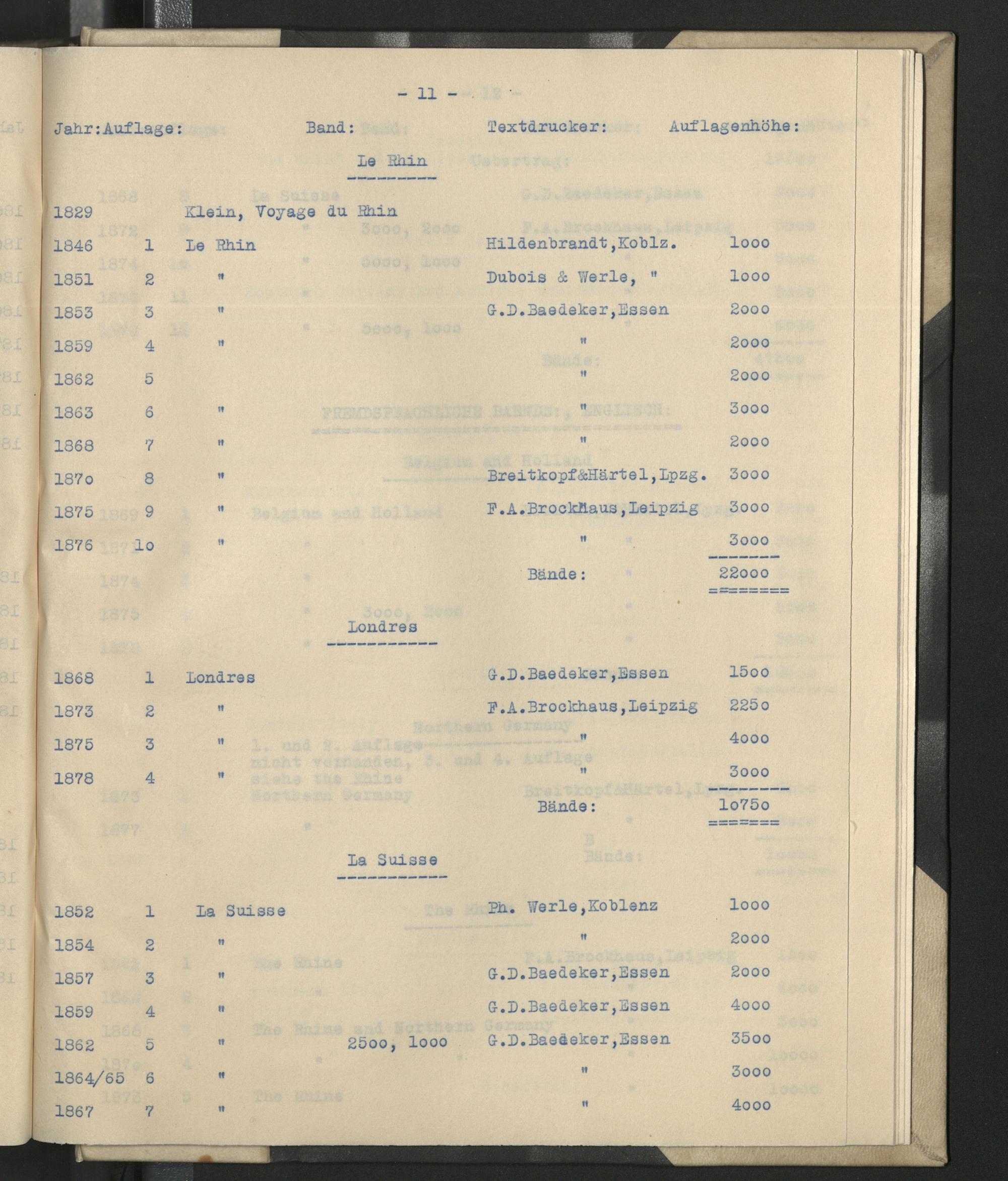 V. Anhang. Die Auflagen der Baedekerschen Reisehandbücher 1839-1878