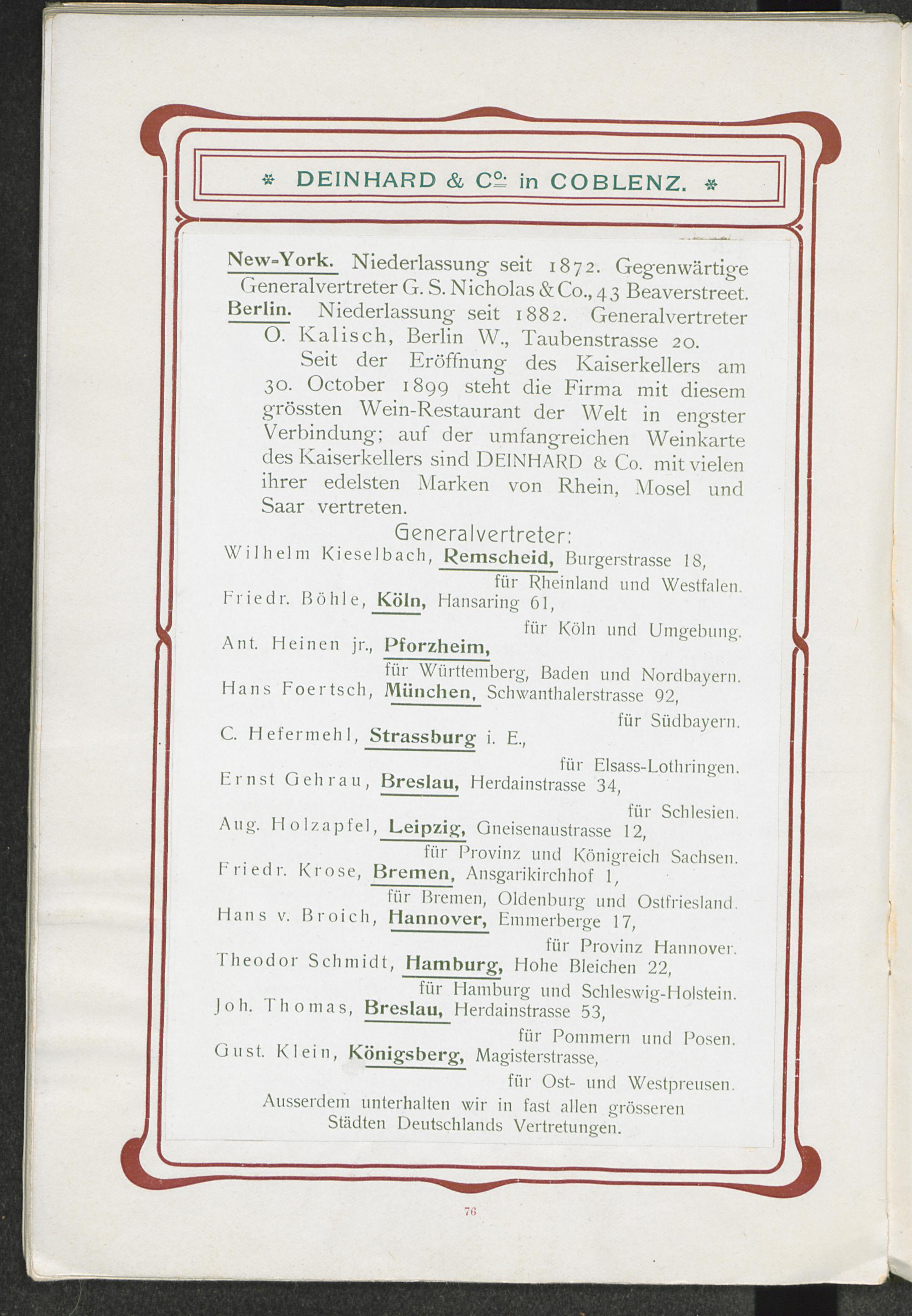 Die Firma Deinhard & Co. in Coblenz.