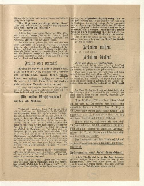 Aufruf an Deutschlands Volk! : eine Botschaft von der wahren Menschenwürde ; Münchener Pfingst-Flugschrift vom "grünen Wimpel"
