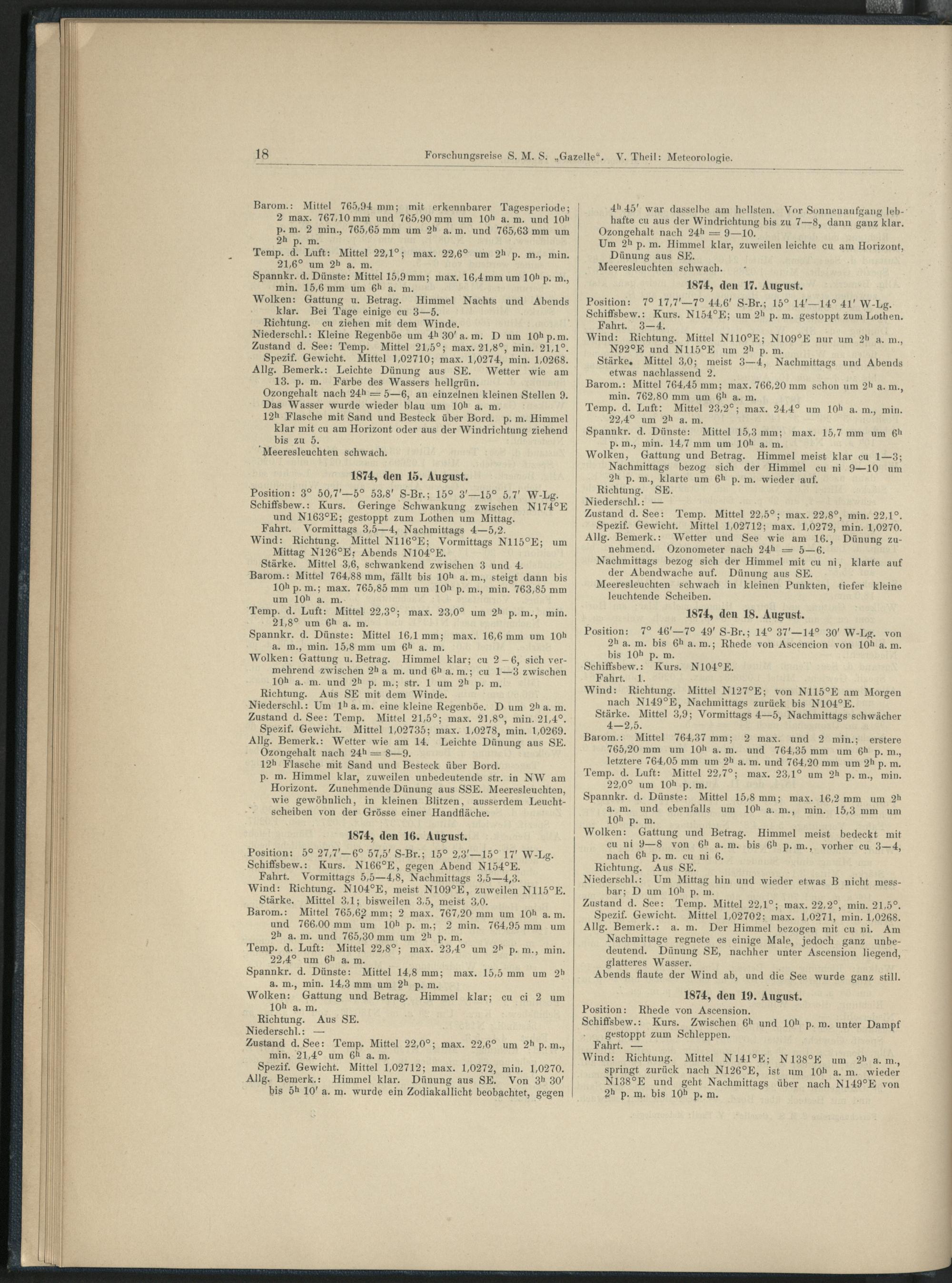 1. Meteorologisches Tagebuch S. M. S. "Gazelle".