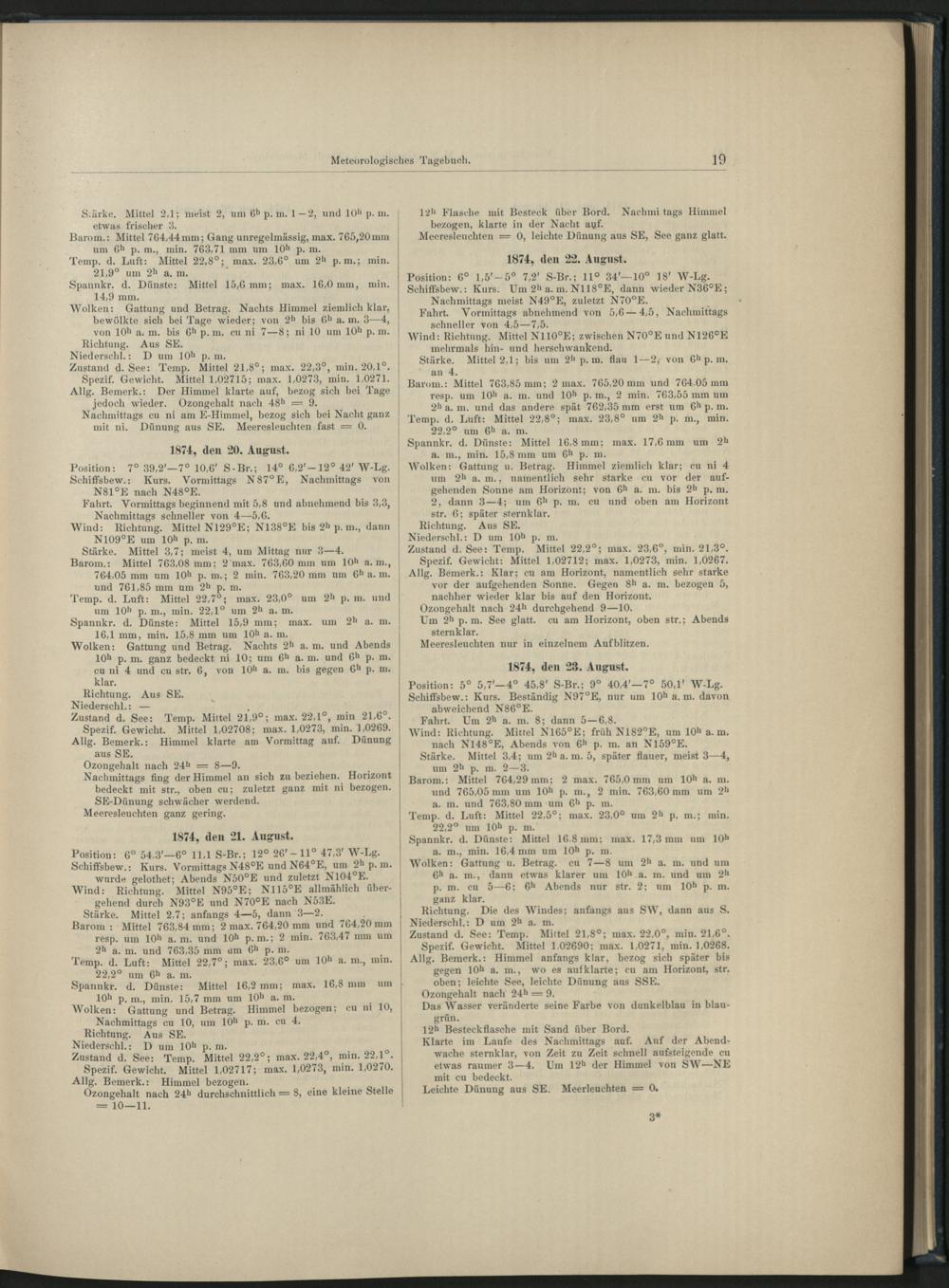 I. Die meteoroglogischen Beobachtungen an Bord S. M. S. "Gazelle" während der Reise vom Juni 1874 bis April 1876.