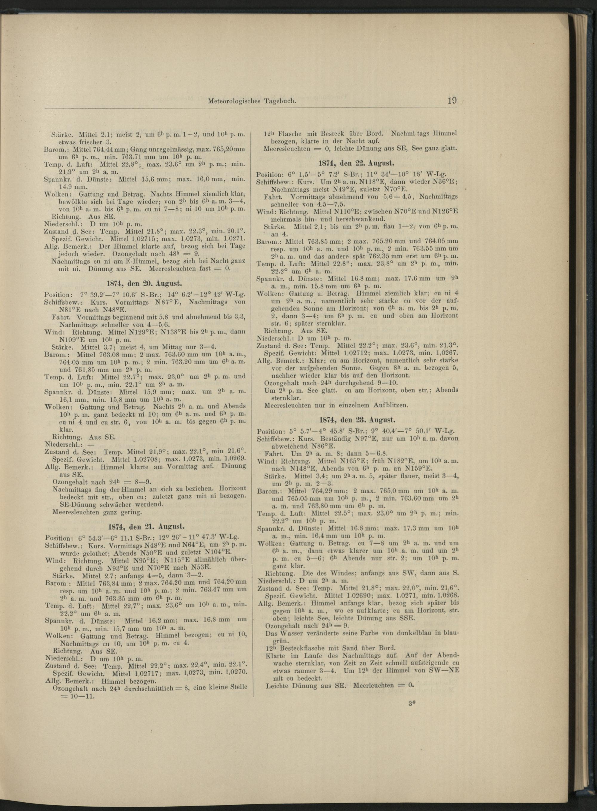 1. Meteorologisches Tagebuch S. M. S. "Gazelle".