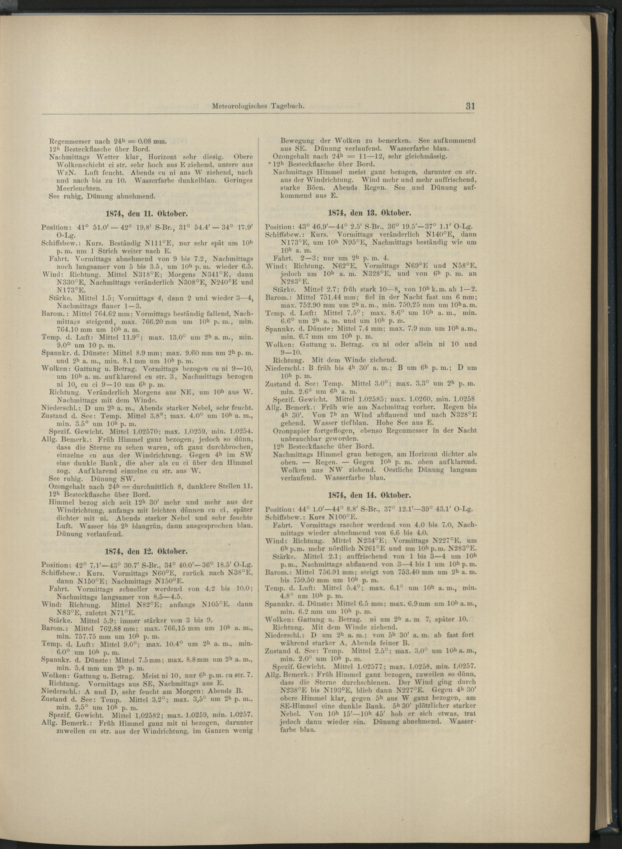 1. Meteorologisches Tagebuch S. M. S. "Gazelle".
