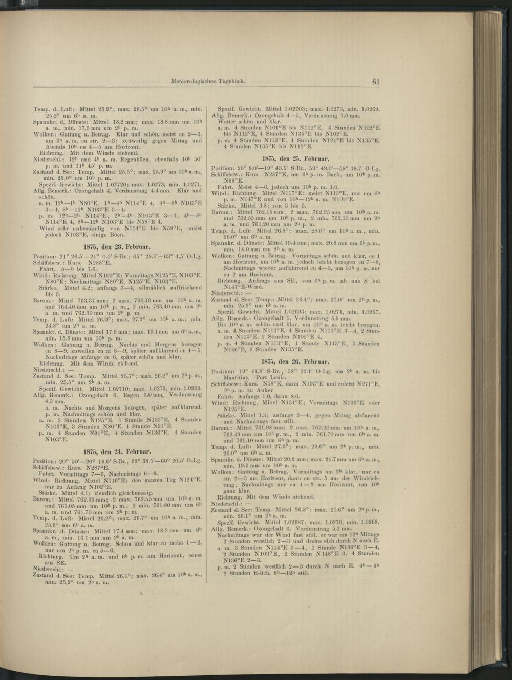 I. Die meteoroglogischen Beobachtungen an Bord S. M. S. "Gazelle" während der Reise vom Juni 1874 bis April 1876.