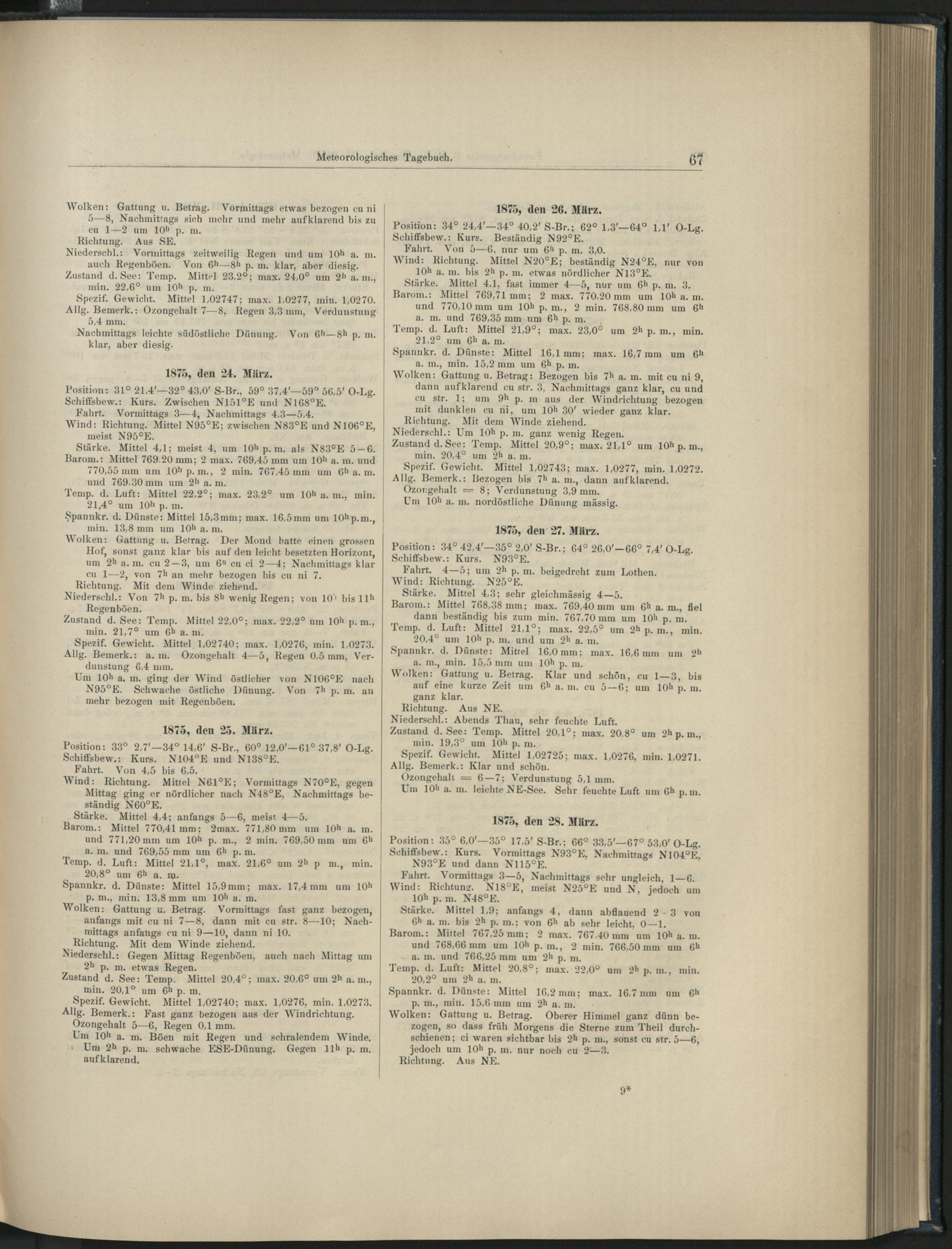 I. Die meteoroglogischen Beobachtungen an Bord S. M. S. "Gazelle" während der Reise vom Juni 1874 bis April 1876.