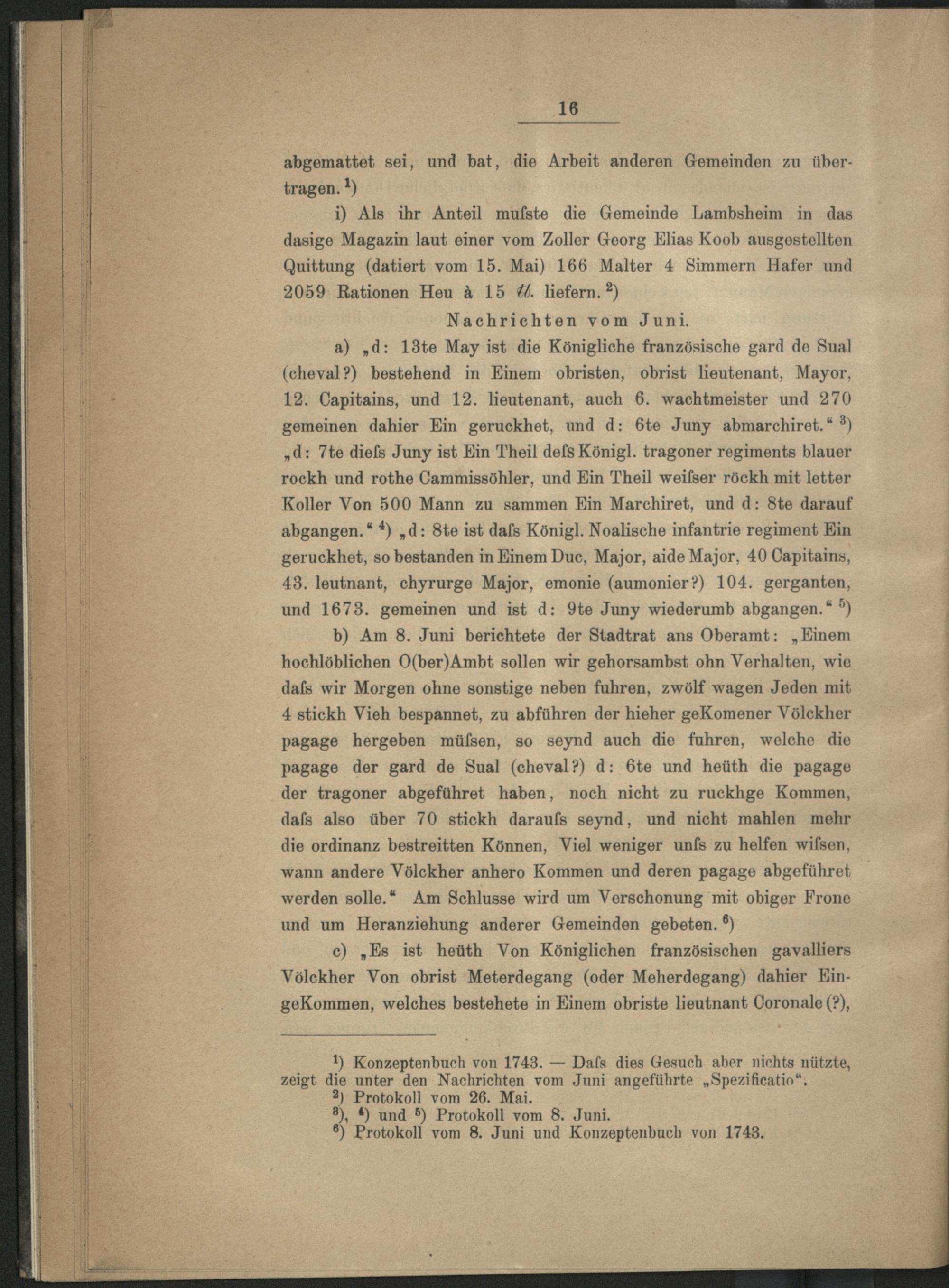 Geschichtliches von Lambsheim aus den Jahren 1740 bis 1745