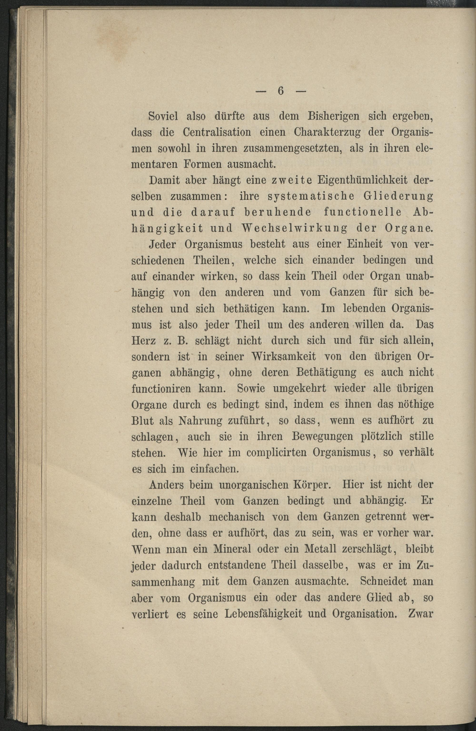 Erstes Kapitel. Ueber die Unterschiede des lebenden Organismus vom unorganischen Körper.