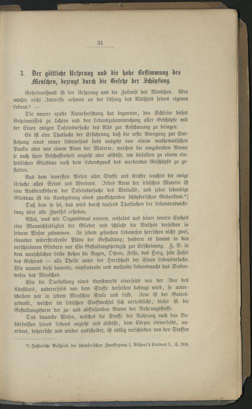 3. Der göttliche Ursprung und die hohe Bestimmung des Menschen, bezeugt durch die Gesetze der Schöpfung.