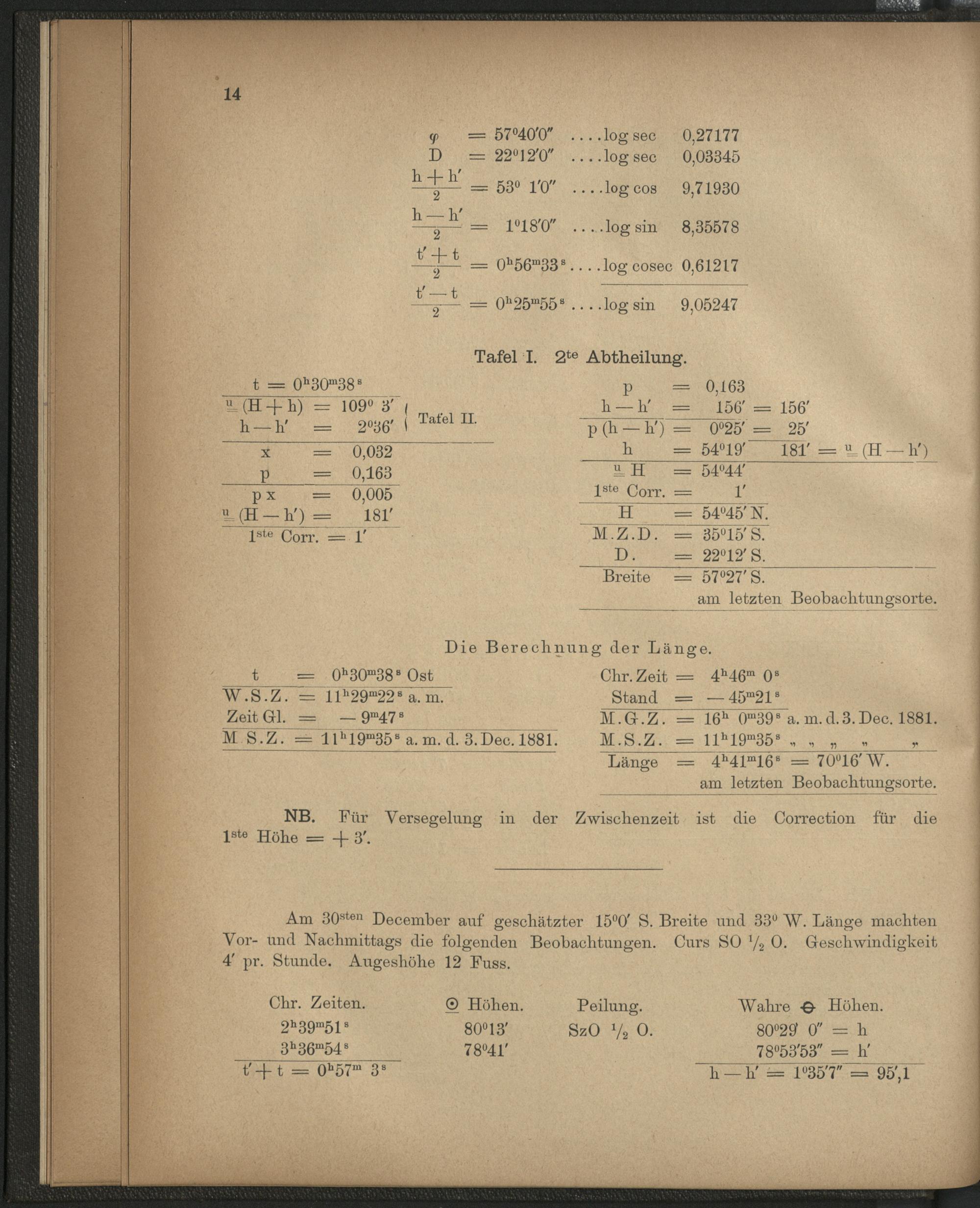 Neue Methode zur Erleichterung der Bestimmung des Schiffsortes, der Variation und Deviation des Compasses, aus astronomischen Beobachtungen, ausser dem Meridiane, nebst den dazu gehörenden Tafeln : für den Seegebrauch untersucht auf der Kaiserlich Deutschen Seewarte / von Capt. H. Heyenga
