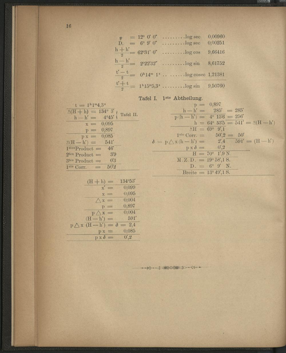 Neue Methode zur Erleichterung der Bestimmung des Schiffsortes, der Variation und Deviation des Compasses, aus astronomischen Beobachtungen, ausser dem Meridiane, nebst den dazu gehörenden Tafeln : für den Seegebrauch untersucht auf der Kaiserlich Deutschen Seewarte / von Capt. H. Heyenga