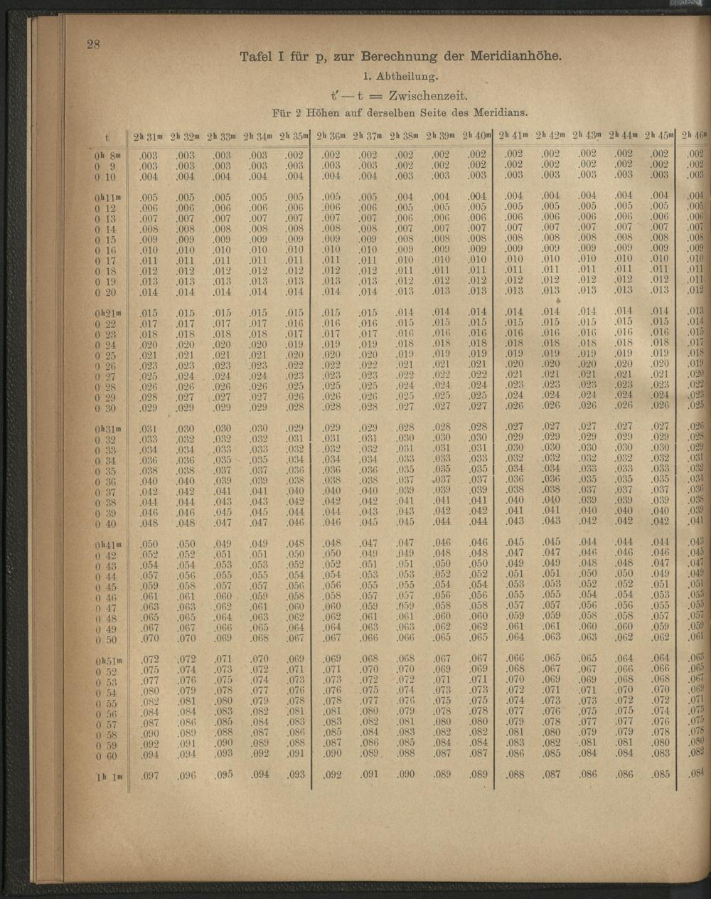 Neue Methode zur Erleichterung der Bestimmung des Schiffsortes, der Variation und Deviation des Compasses, aus astronomischen Beobachtungen, ausser dem Meridiane, nebst den dazu gehörenden Tafeln : für den Seegebrauch untersucht auf der Kaiserlich Deutschen Seewarte / von Capt. H. Heyenga