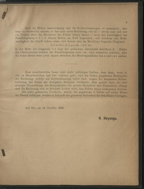 Neue Methode zur Erleichterung der Bestimmung des Schiffsortes, der Variation und Deviation des Compasses, aus astronomischen Beobachtungen, ausser dem Meridiane, nebst den dazu gehörenden Tafeln : für den Seegebrauch untersucht auf der Kaiserlich Deutschen Seewarte / von Capt. H. Heyenga