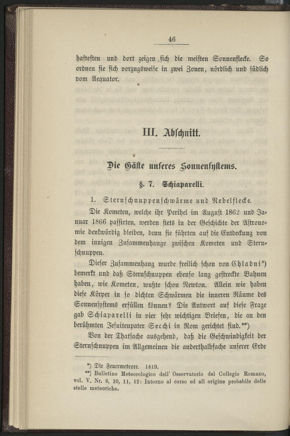 III. Abschnitt. Die Gäste unseres Sonnensystems.