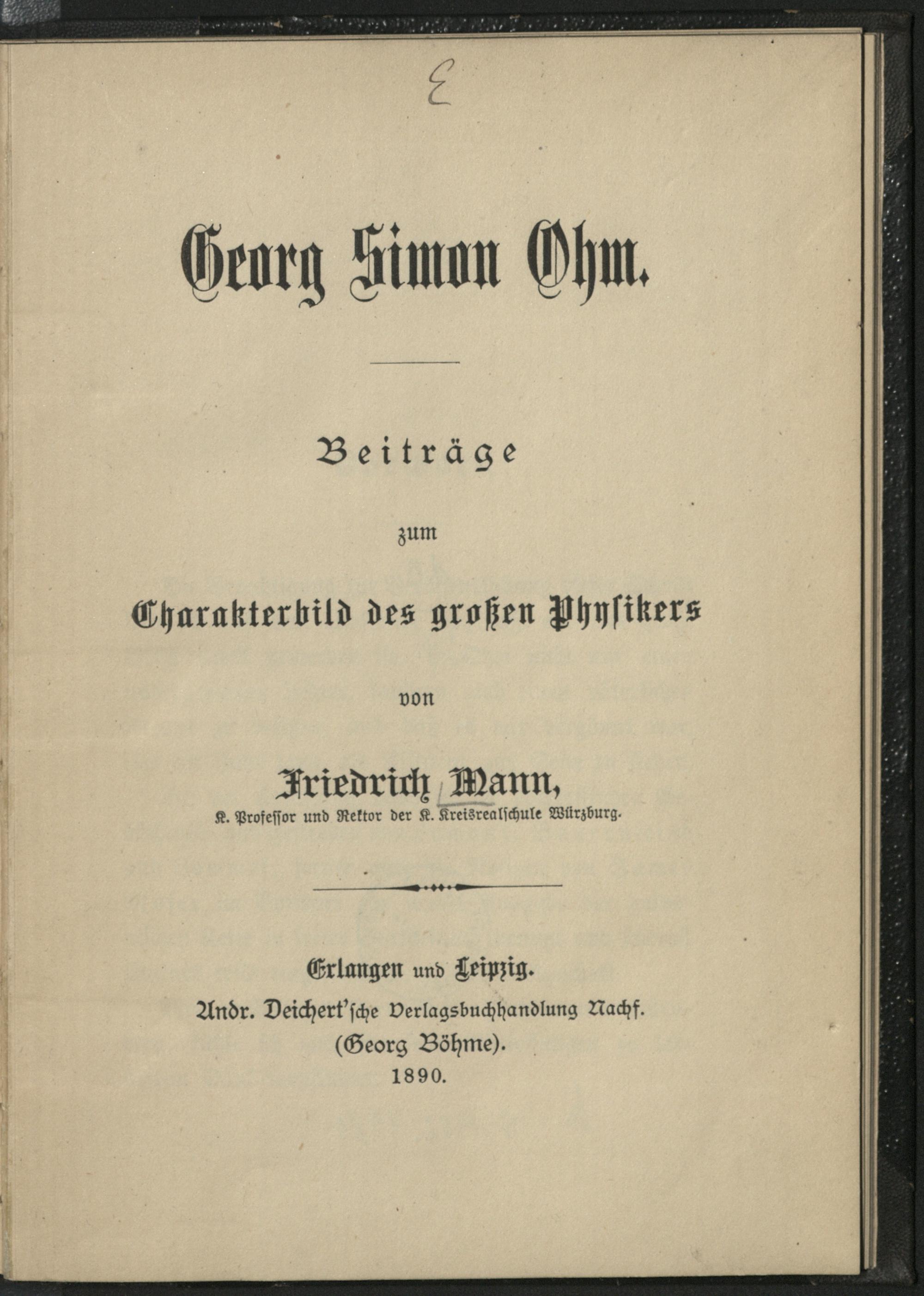 Georg Simon Ohm : Beitraege zum Charakterbild des grossen Physikers / von Friedrich Mann