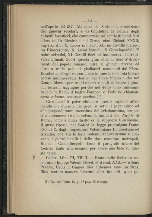 III. Feste civili pel natale di Roma