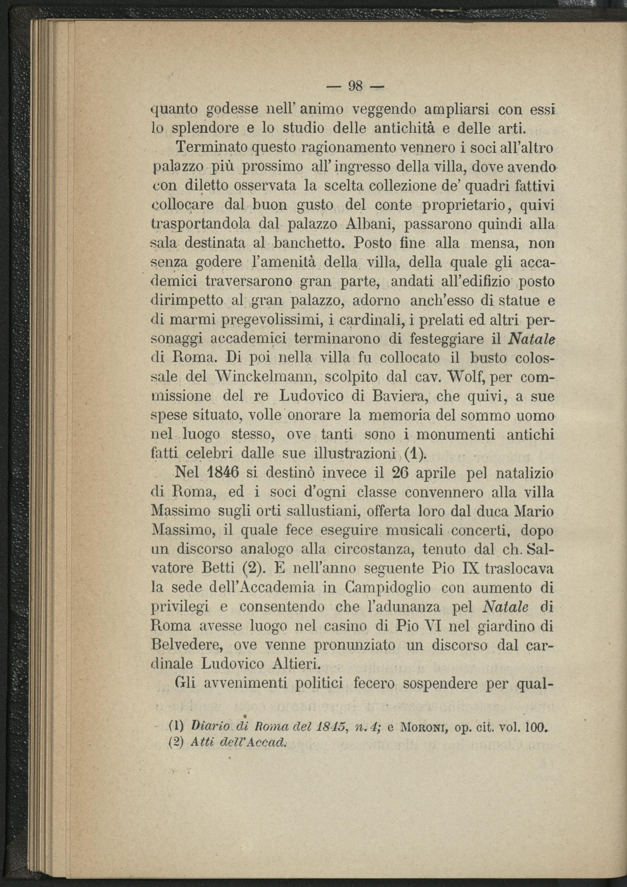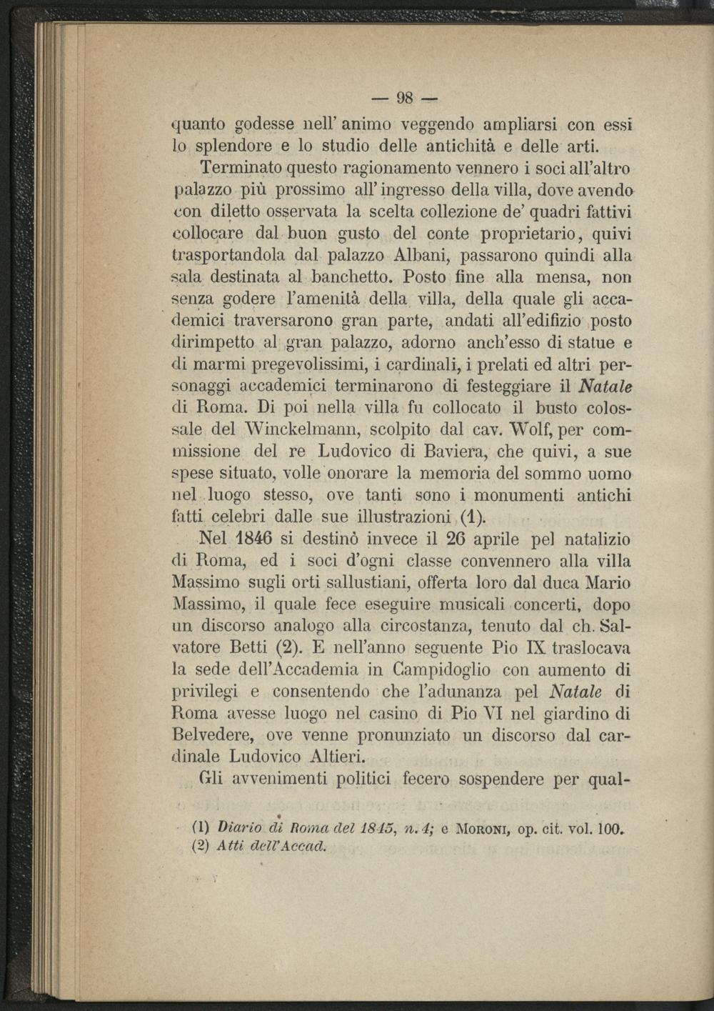 V. Altre solennitá e feste accademiche pel natale di Roma