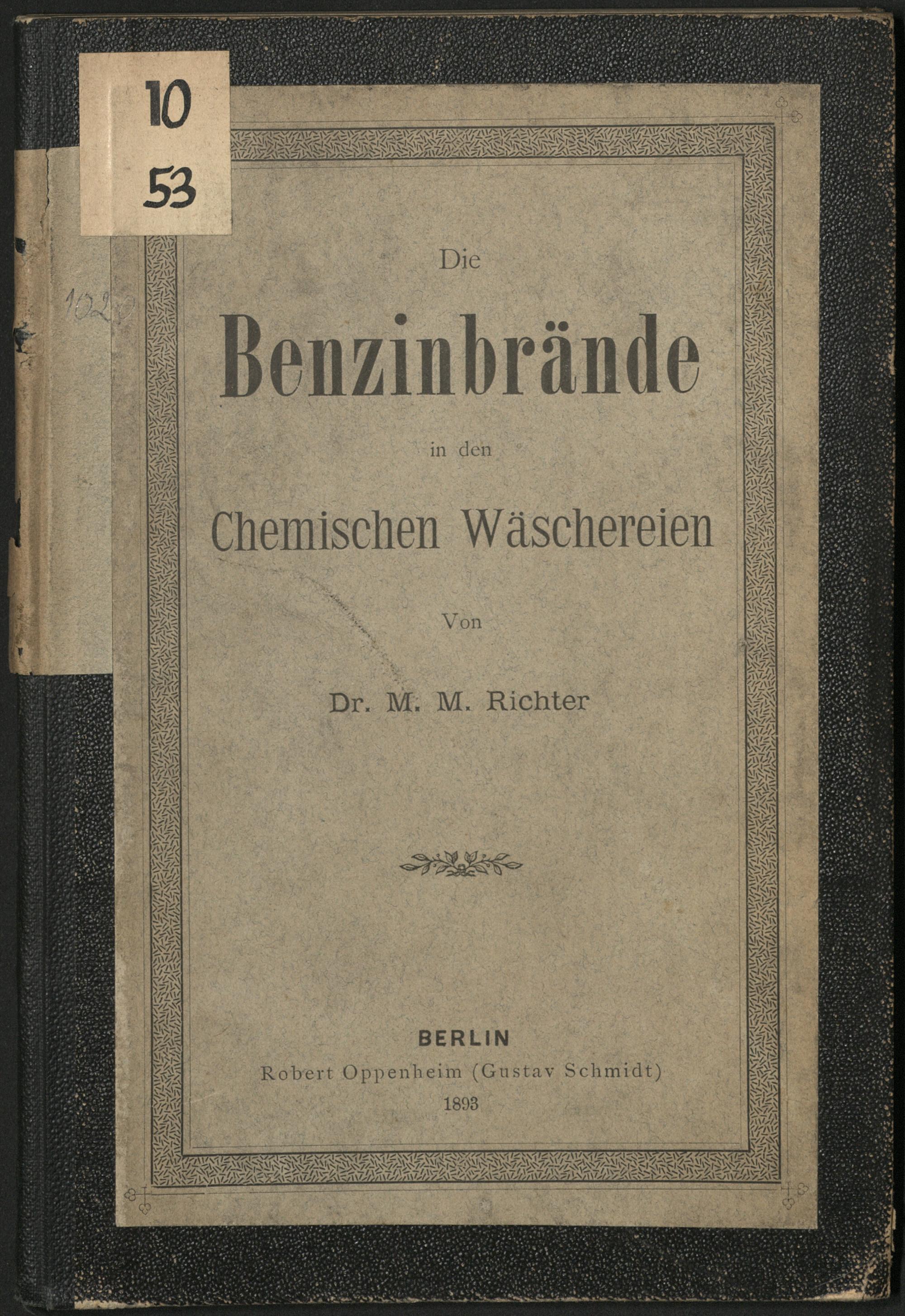 Die Benzinbrände in den chemischen Wäschereien / v. M[ax] M[oritz] Richter