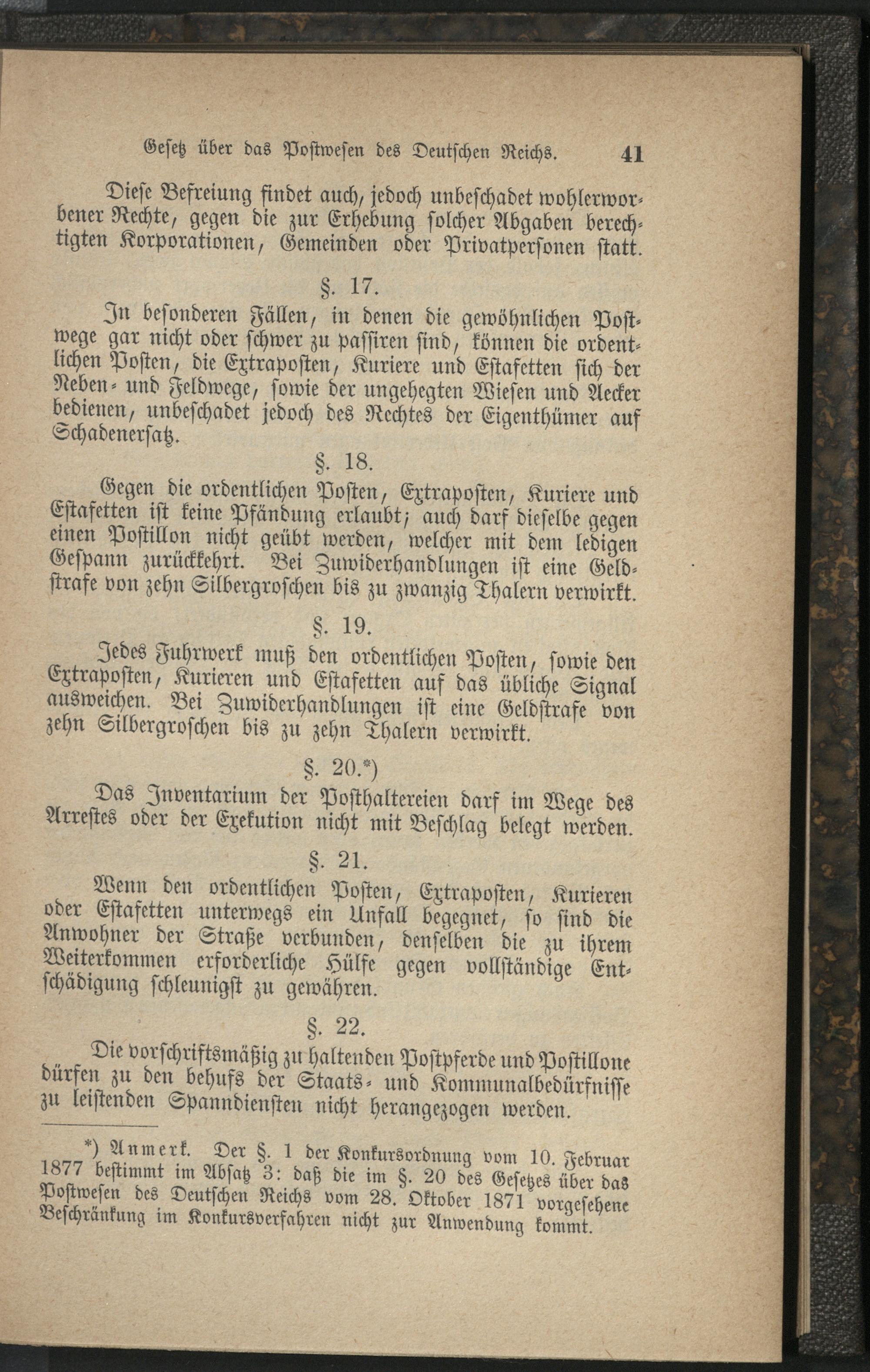 A. Postwesen. Gesetz über das Postwesen des Deutschen Reichs. Vom 28. Oktober 1871.