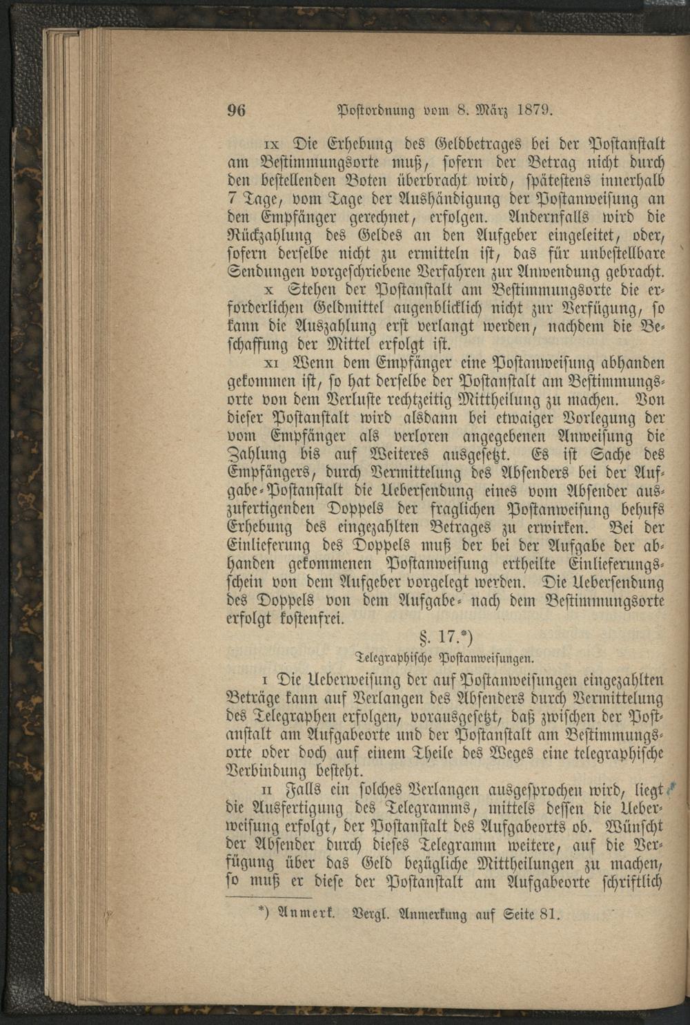 Postordnung vom 8. März 1879.