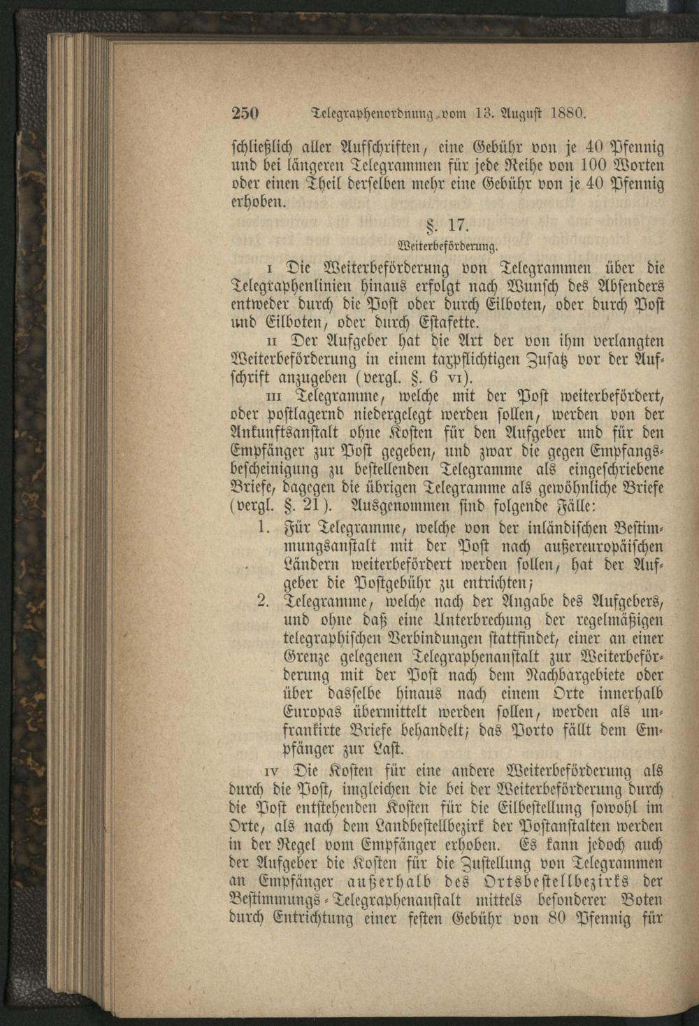 Telepgraphenordnung vom 13. August 1880.