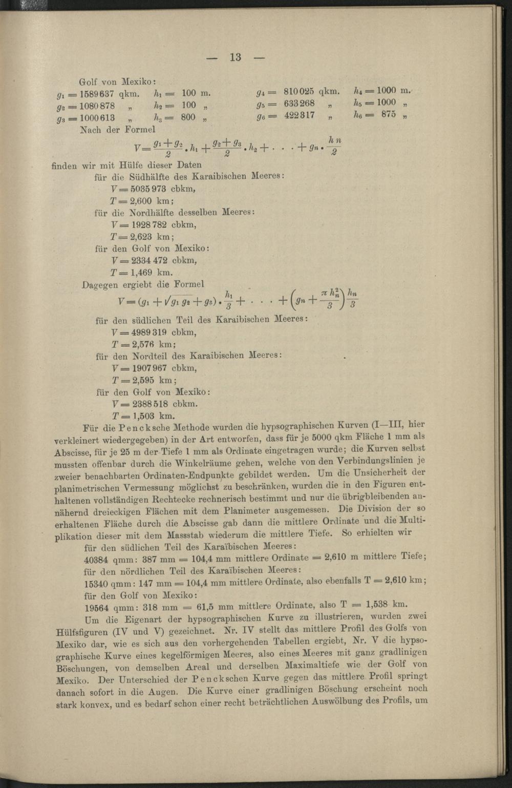 Abschnitt III. Berechnung der mittleren Meerstiefen nach der Feldermethode.