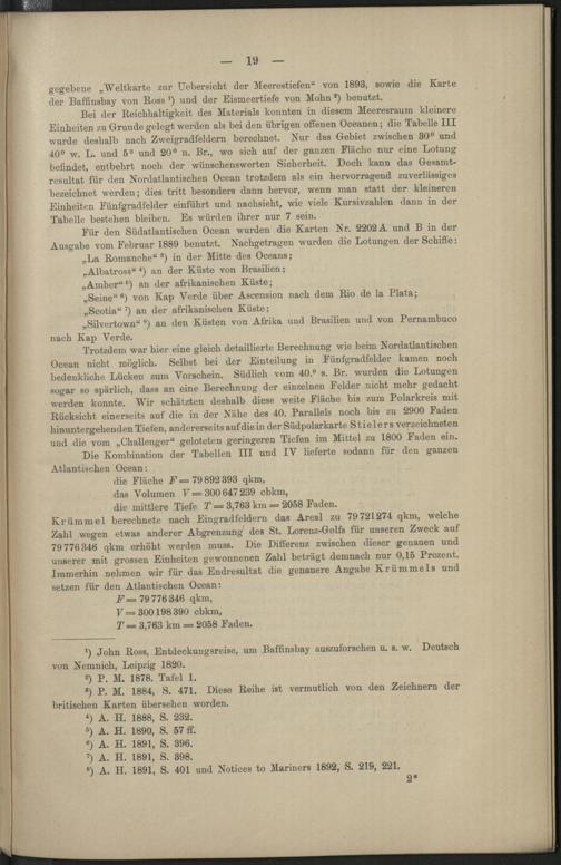 Eine neue Berechnung der mittleren Tiefen der Oceane nebst einer vergleichenden Kritik...