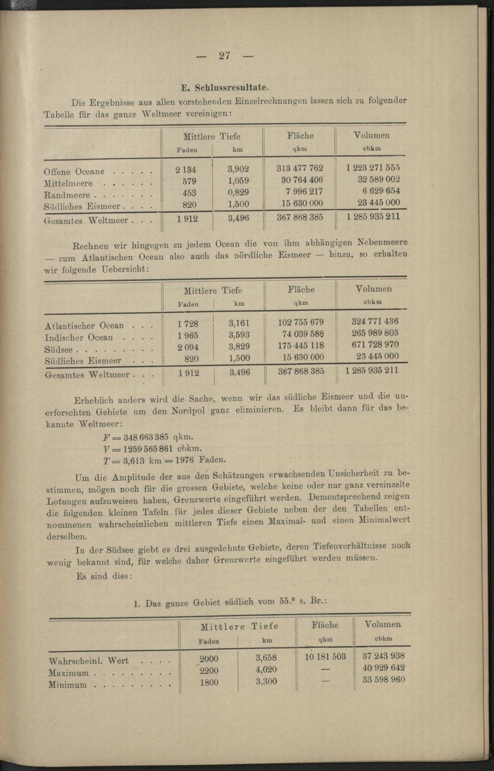 Eine neue Berechnung der mittleren Tiefen der Oceane nebst einer vergleichenden Kritik...