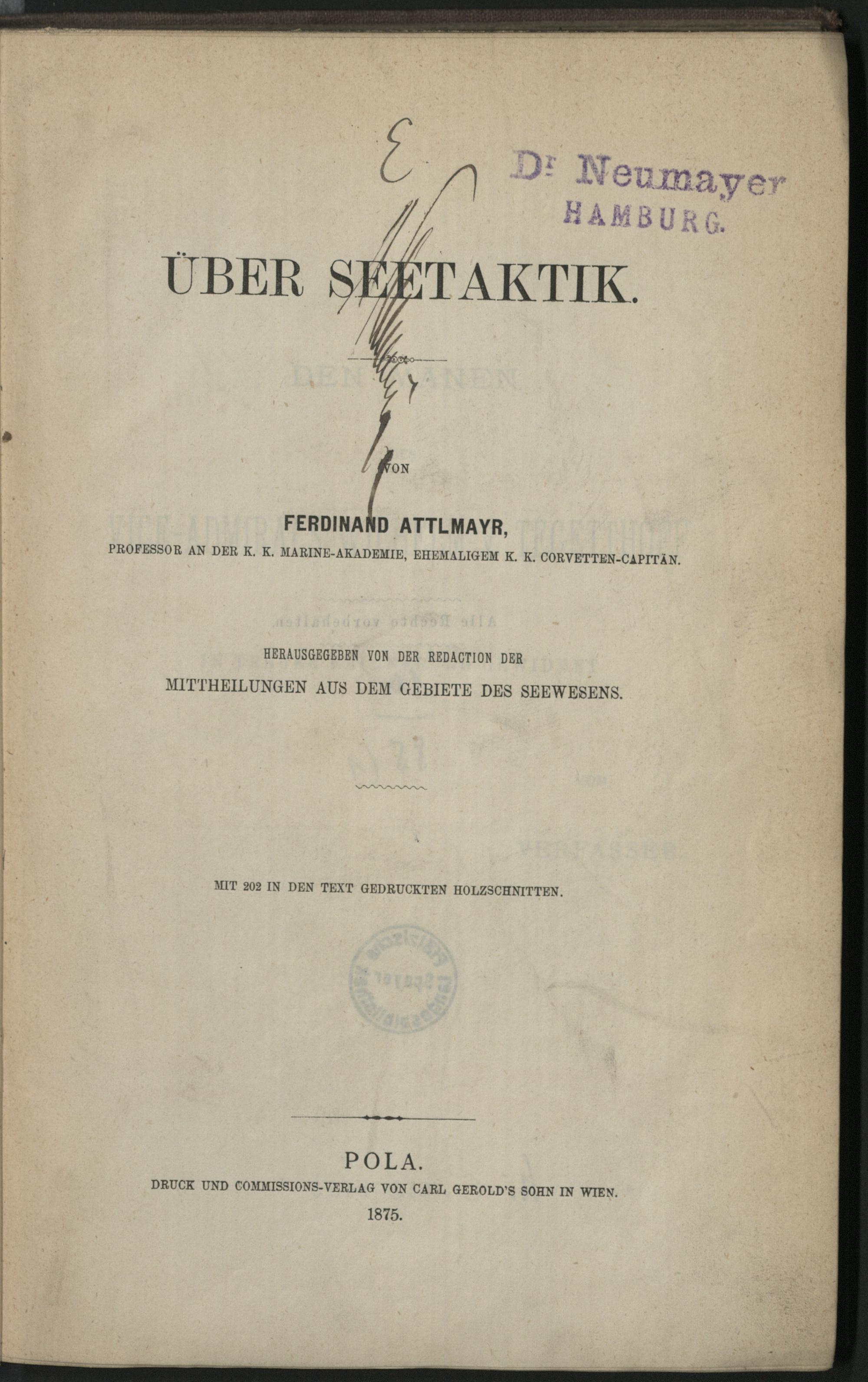 Über Seetaktik / Ferdinand Attlmayr. Hrsg. von der Red. der Mittheilungen aus dem Gebiete des Seewesens