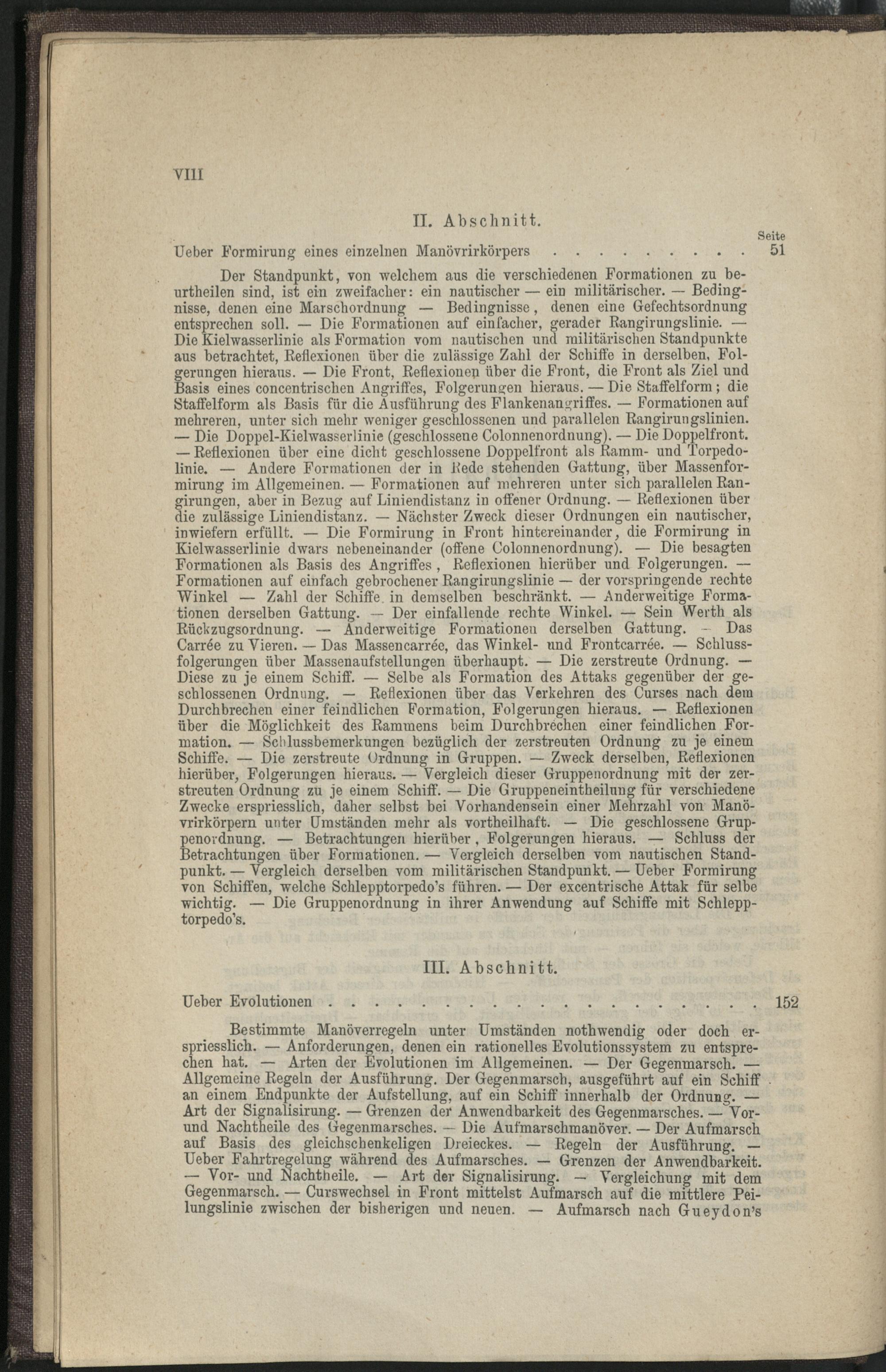 II. Abschnitt. Ueber Formirung eines einzelnen Manövrirkörpers.
