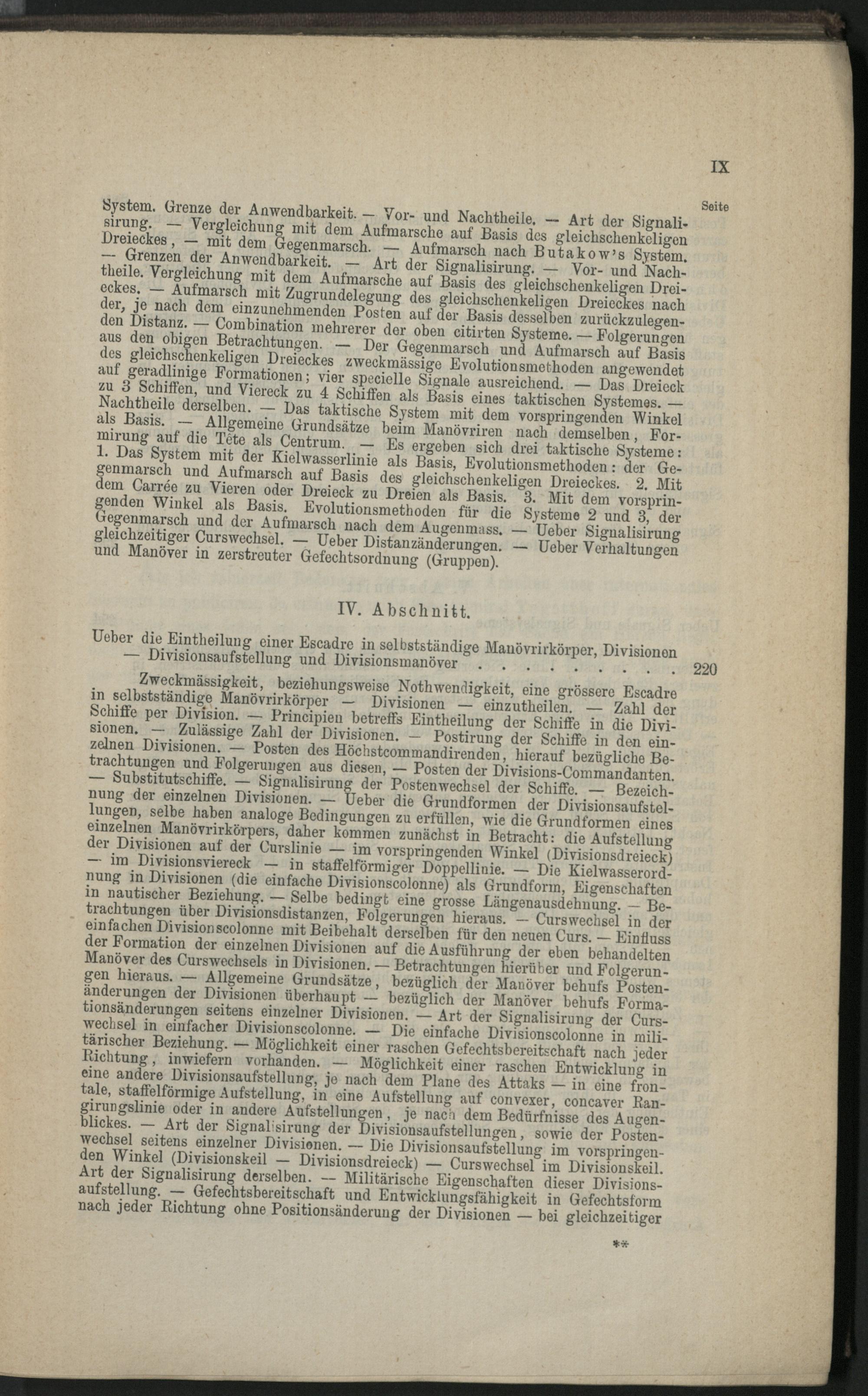 IV. Abschnitt. Ueber die Eintheilung einer Escadre in selbstständige Manövrirkörper, Divisionen. - Divisionsaufstellung und Divisionsmanöver.